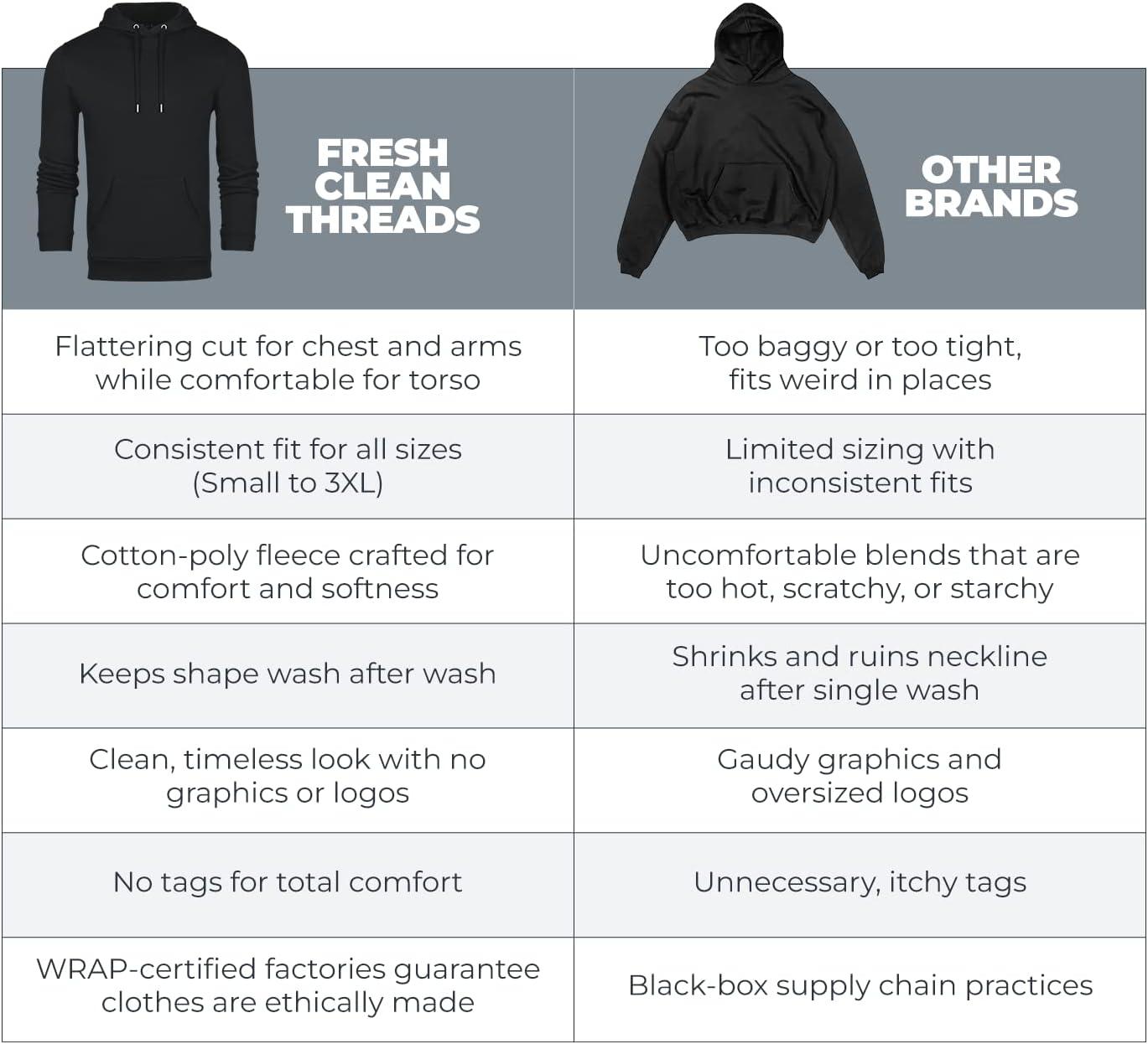 Fresh Clean Threads Pullover Hoodies for Men – Pre Shrunk Soft Fitted Premium Classic Fit – Cotton Poly Mens Hoodie