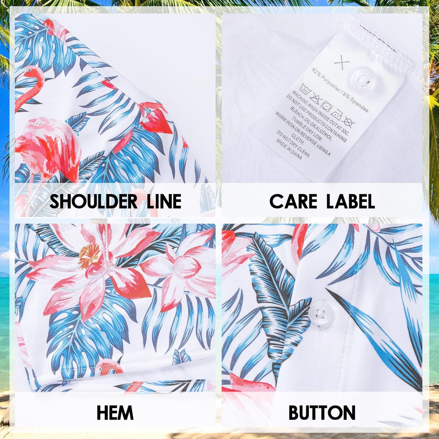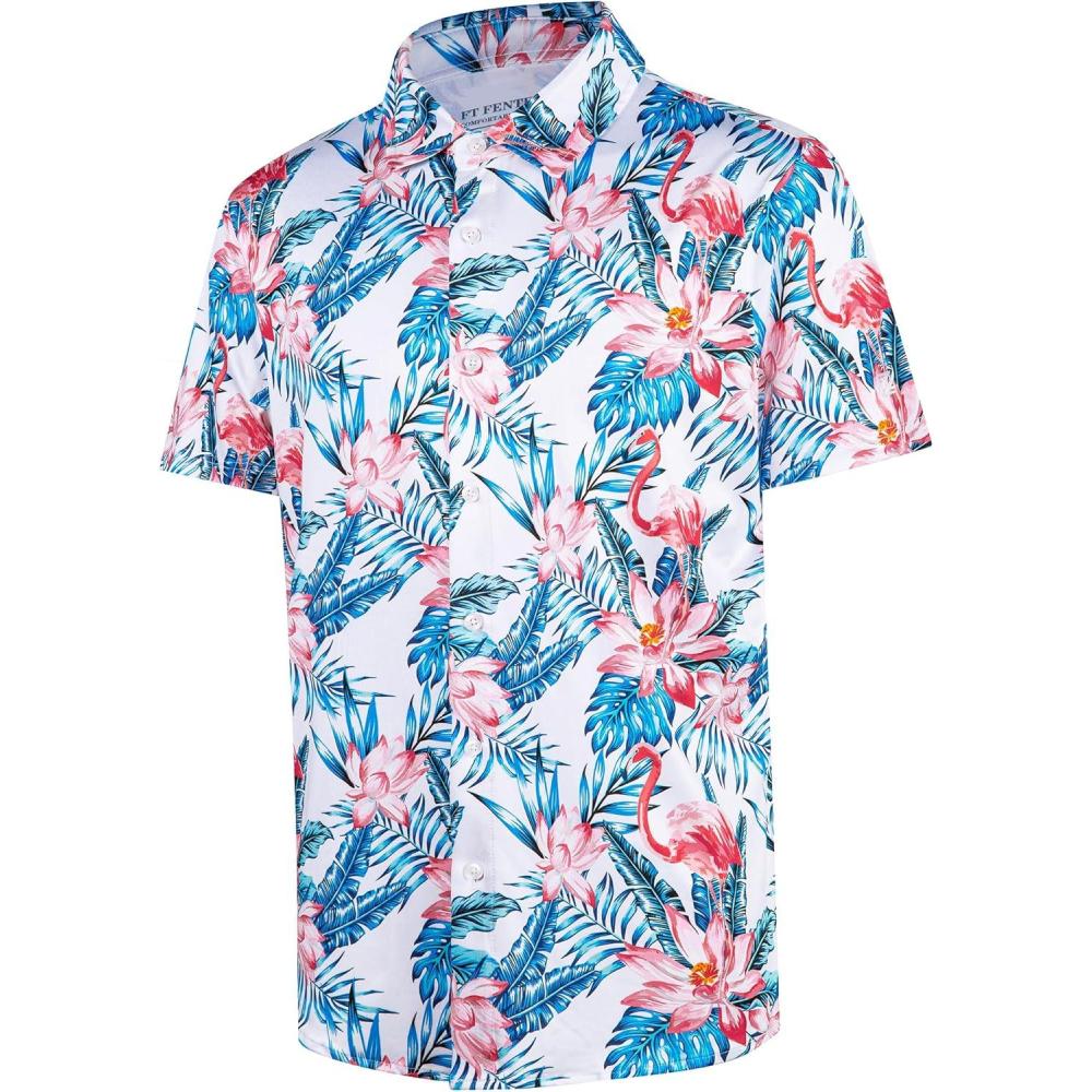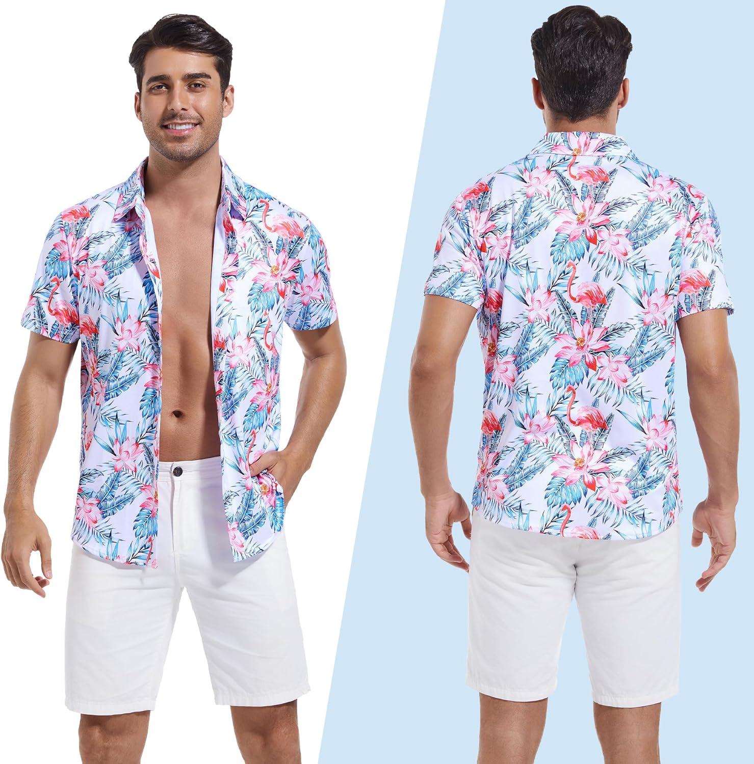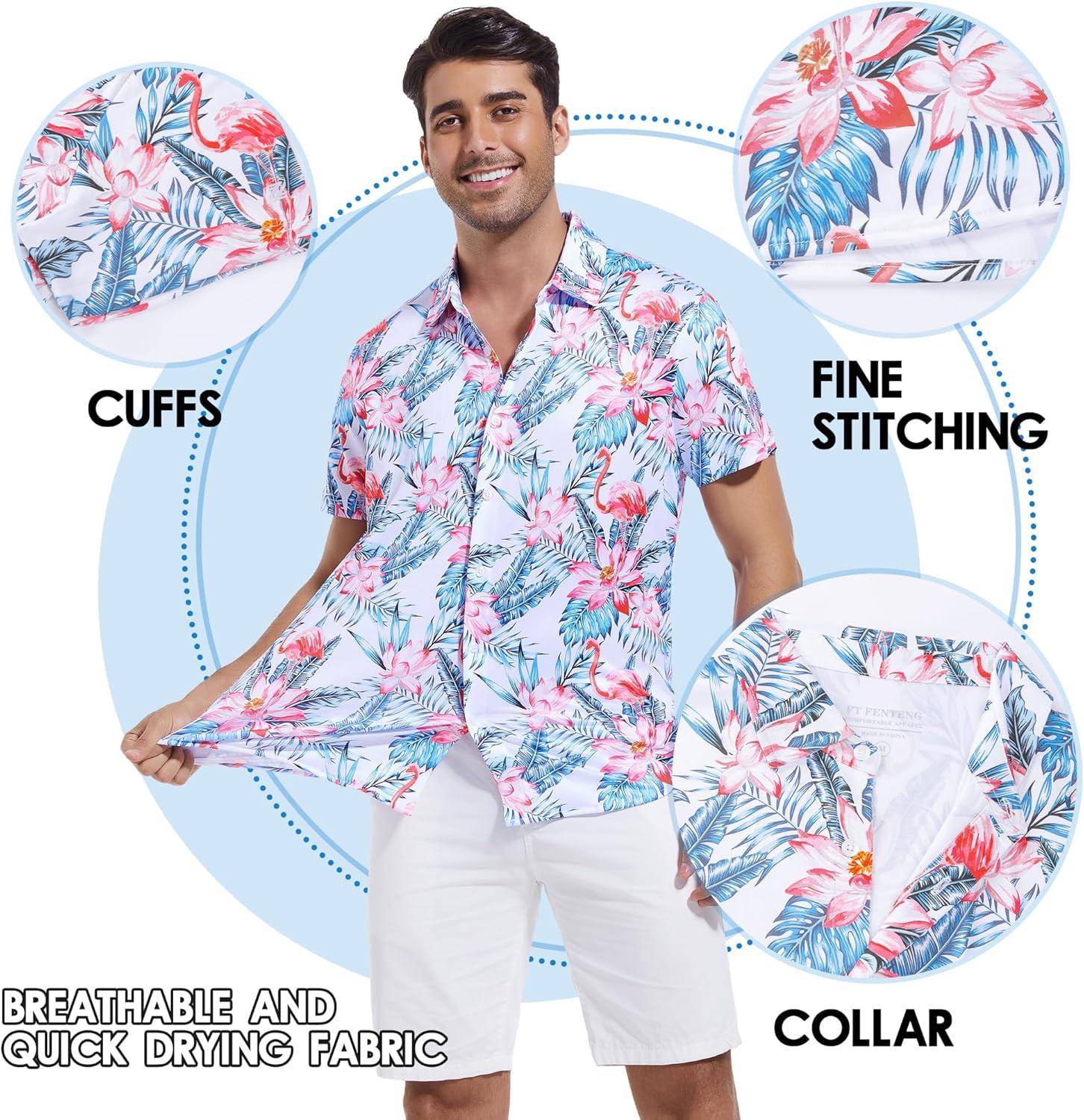 FT FENTENG Mens Hawaiian Shirts Regular Fit Short Sleeve Casual Button Down Summer Tropical Beach Shirts(Flower Flamingo)