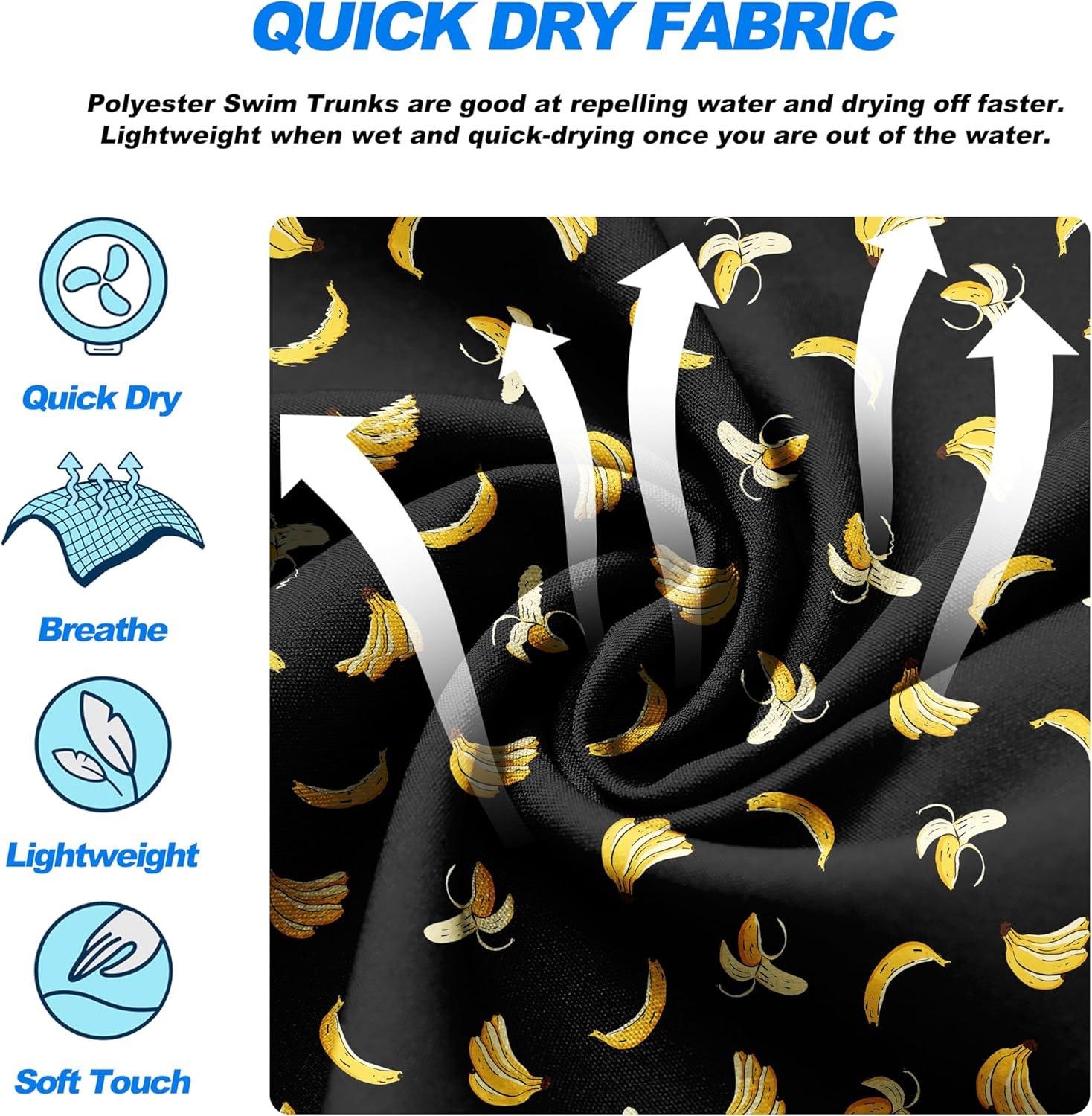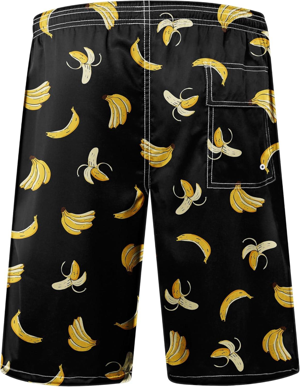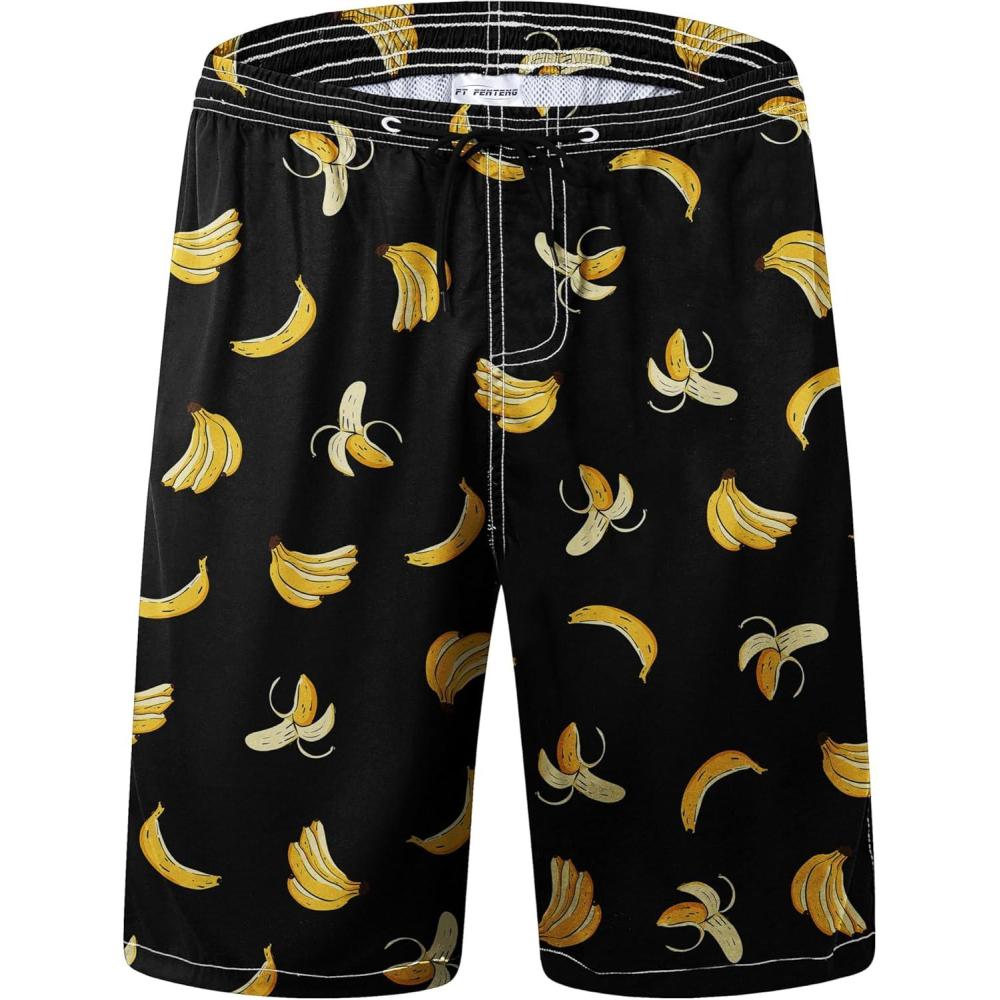 FT FENTENG Mens Swim Trunks Quick Dry Board Shorts with Mesh Lining, Breathable Surf Beach Shorts Swimwear Bathing Suits(Black Banana-1)