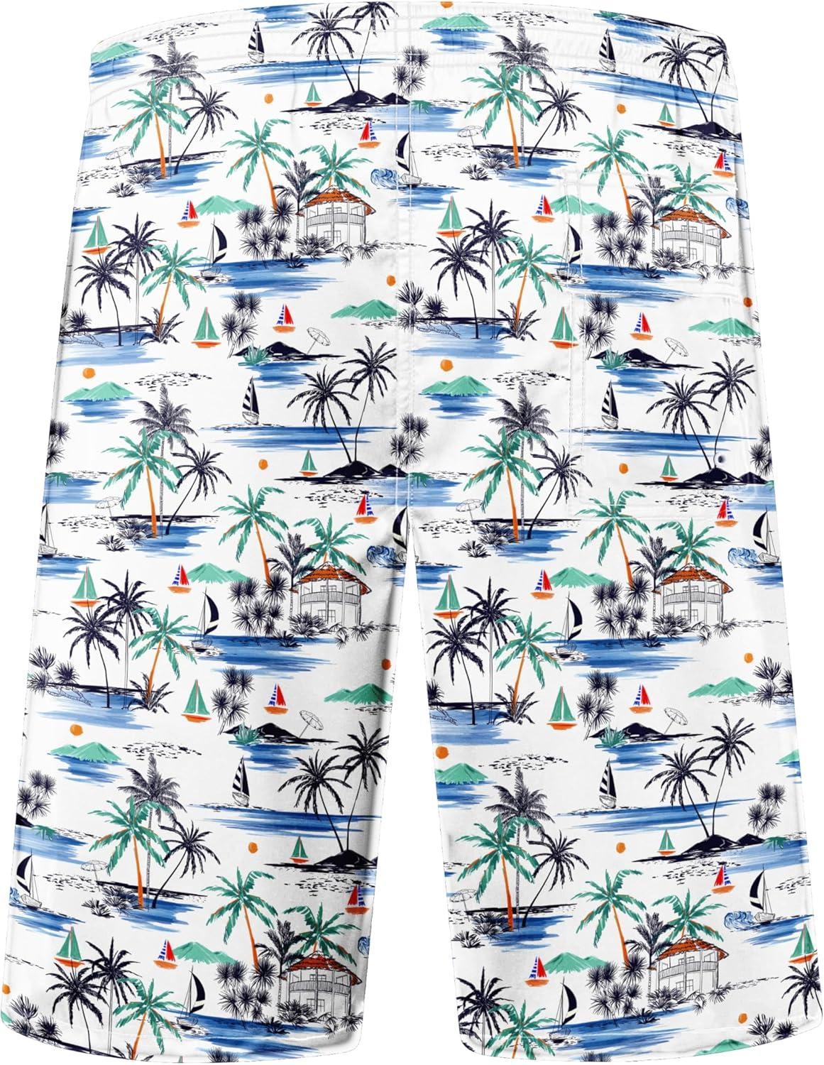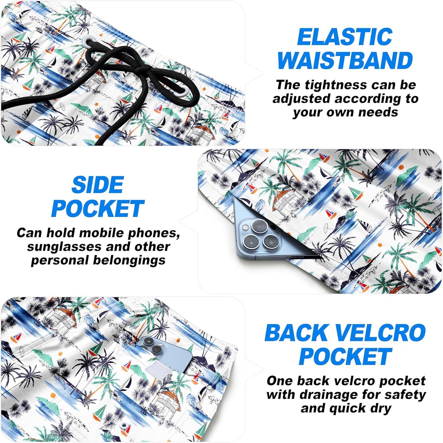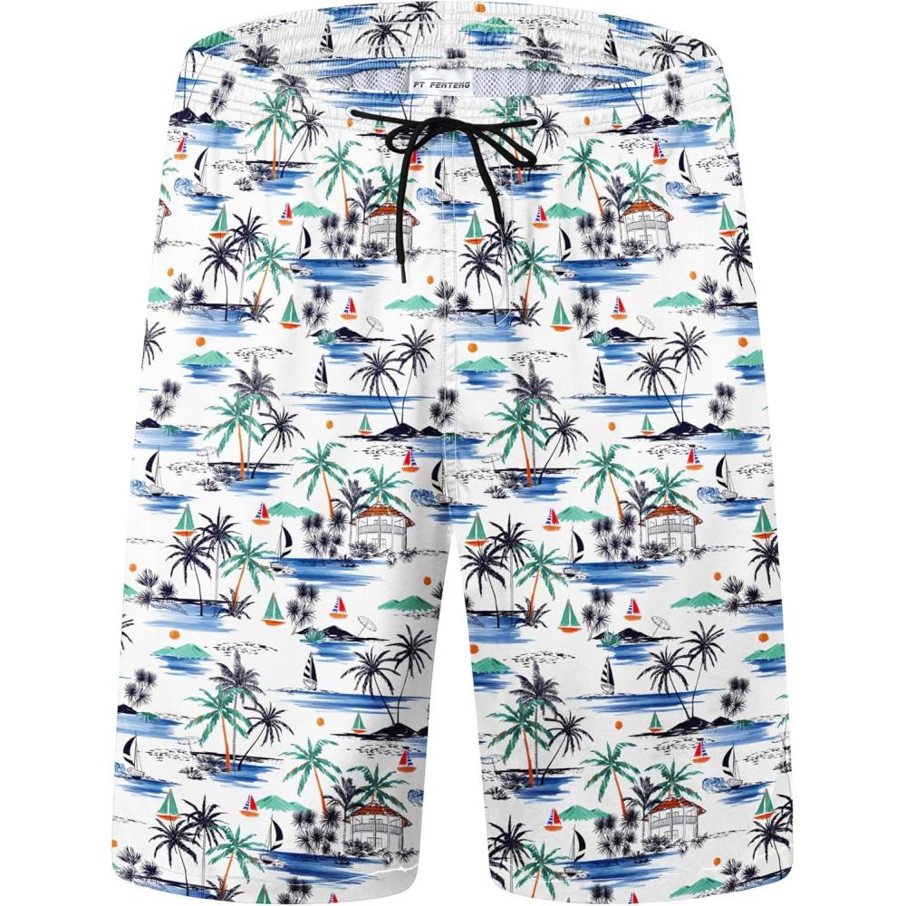 FT FENTENG Mens Swim Trunks Quick Dry Board Shorts with Mesh Lining, Breathable Surf Beach Shorts Swimwear Bathing Suits(Hawaii Sailboat)