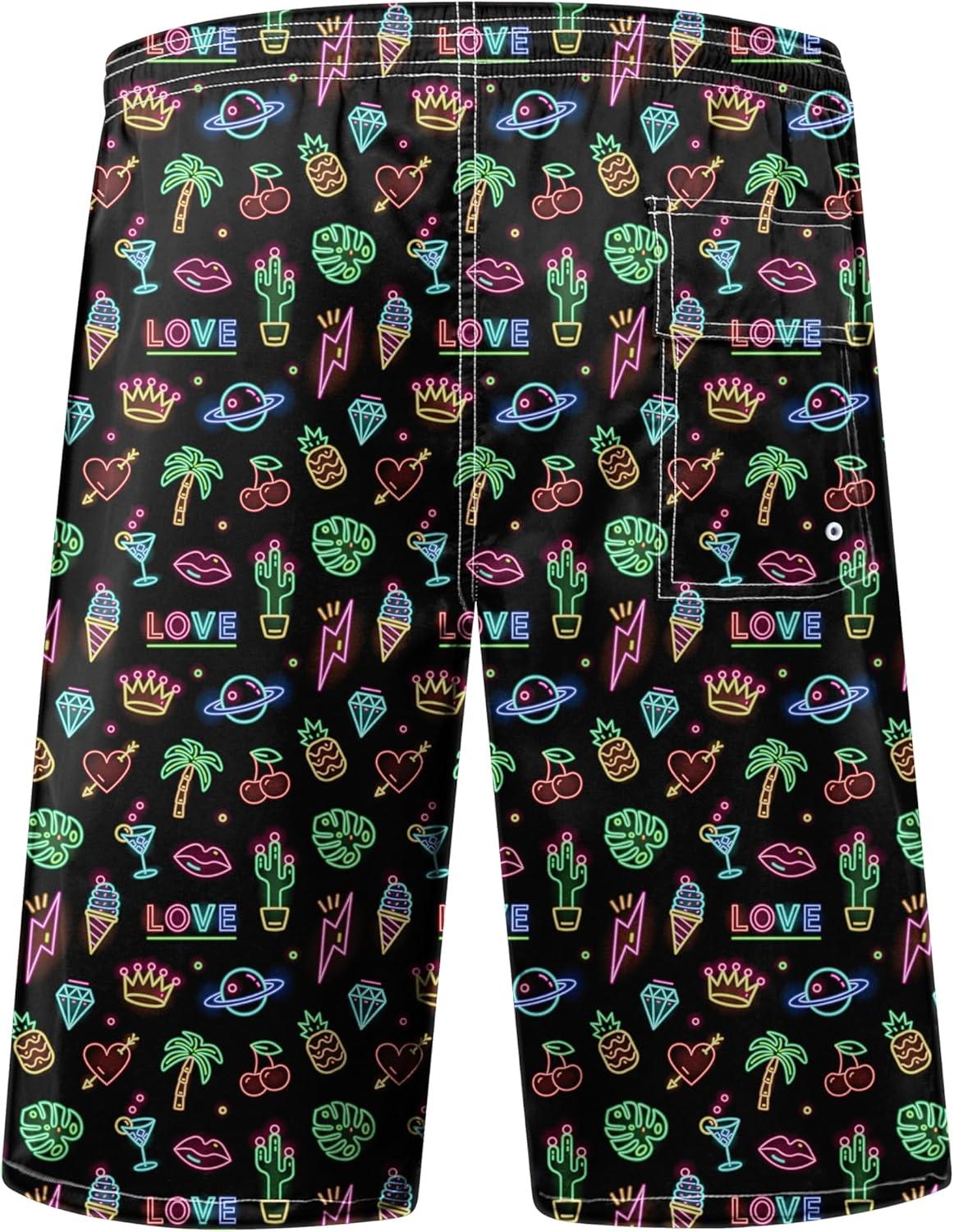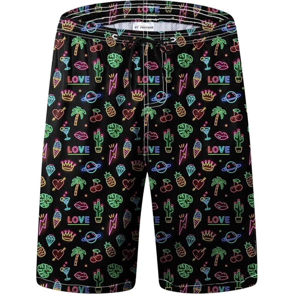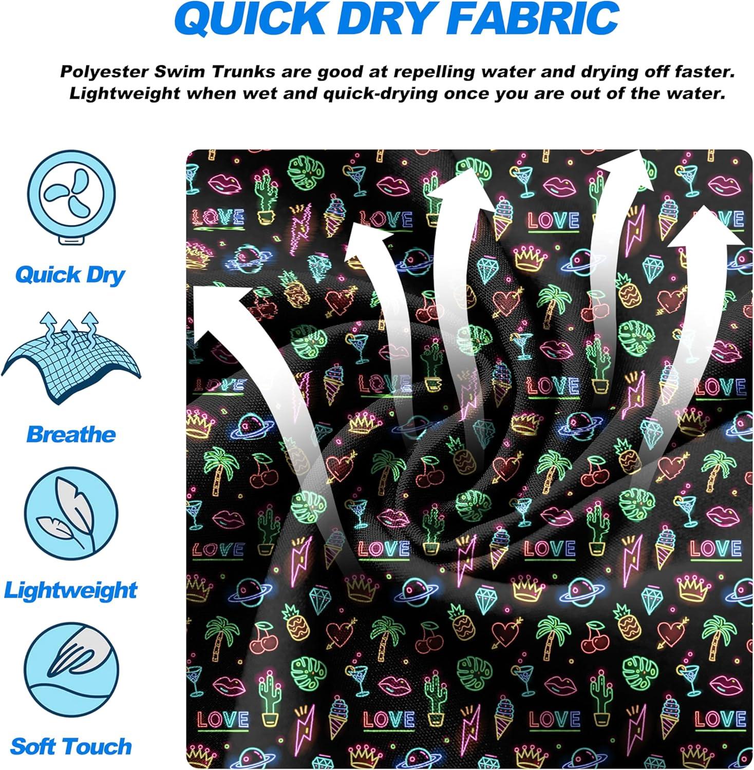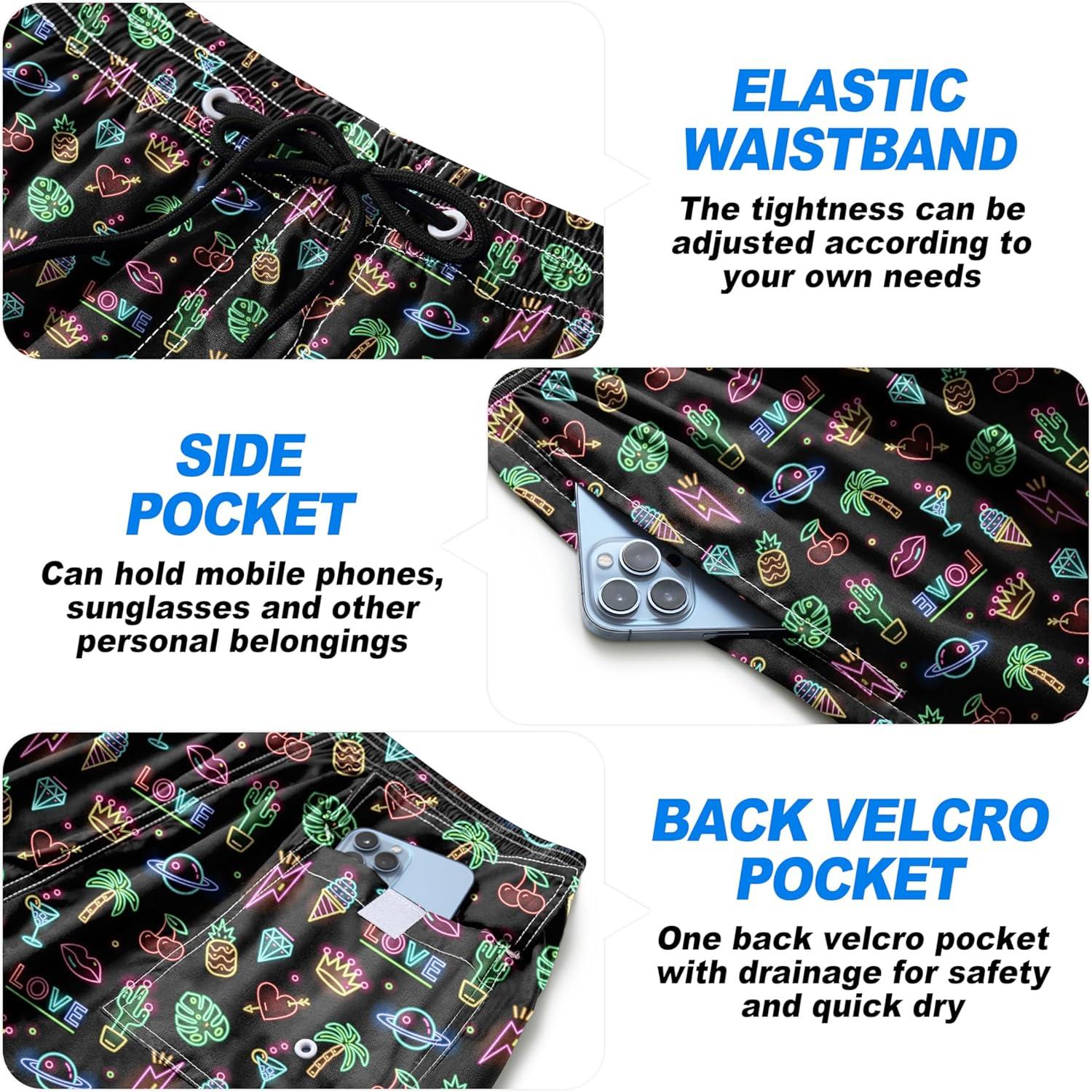 FT FENTENG Mens Swim Trunks Quick Dry Board Shorts with Mesh Lining, Breathable Surf Beach Shorts Swimwear Bathing Suits(Neon Hawaii Palm)
