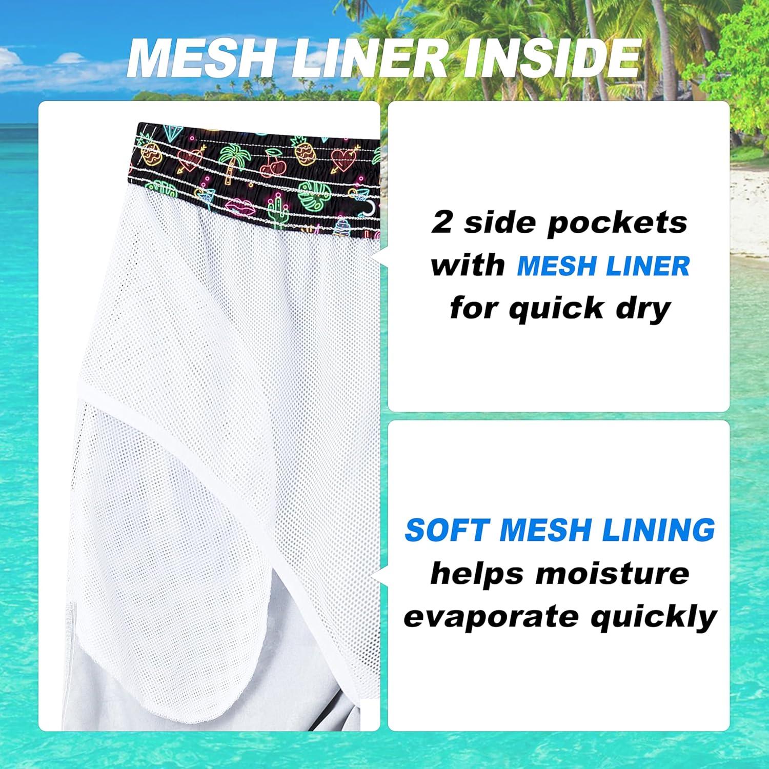 imageFT FENTENG Mens Swim Trunks Quick Dry Board Shorts with Mesh Lining Breathable Surf Beach Shorts Swimwear Bathing SuitsNeon Hawaii Palm