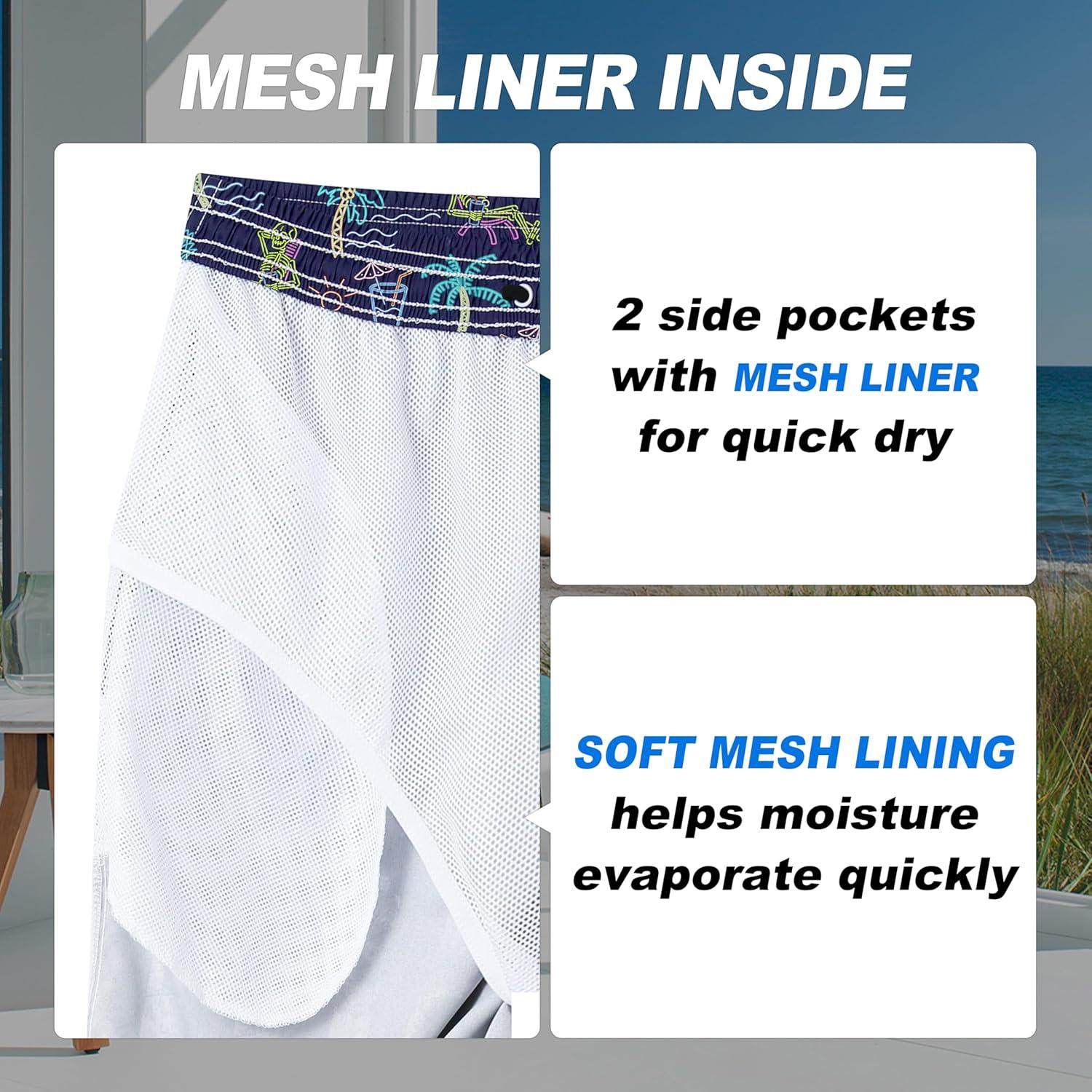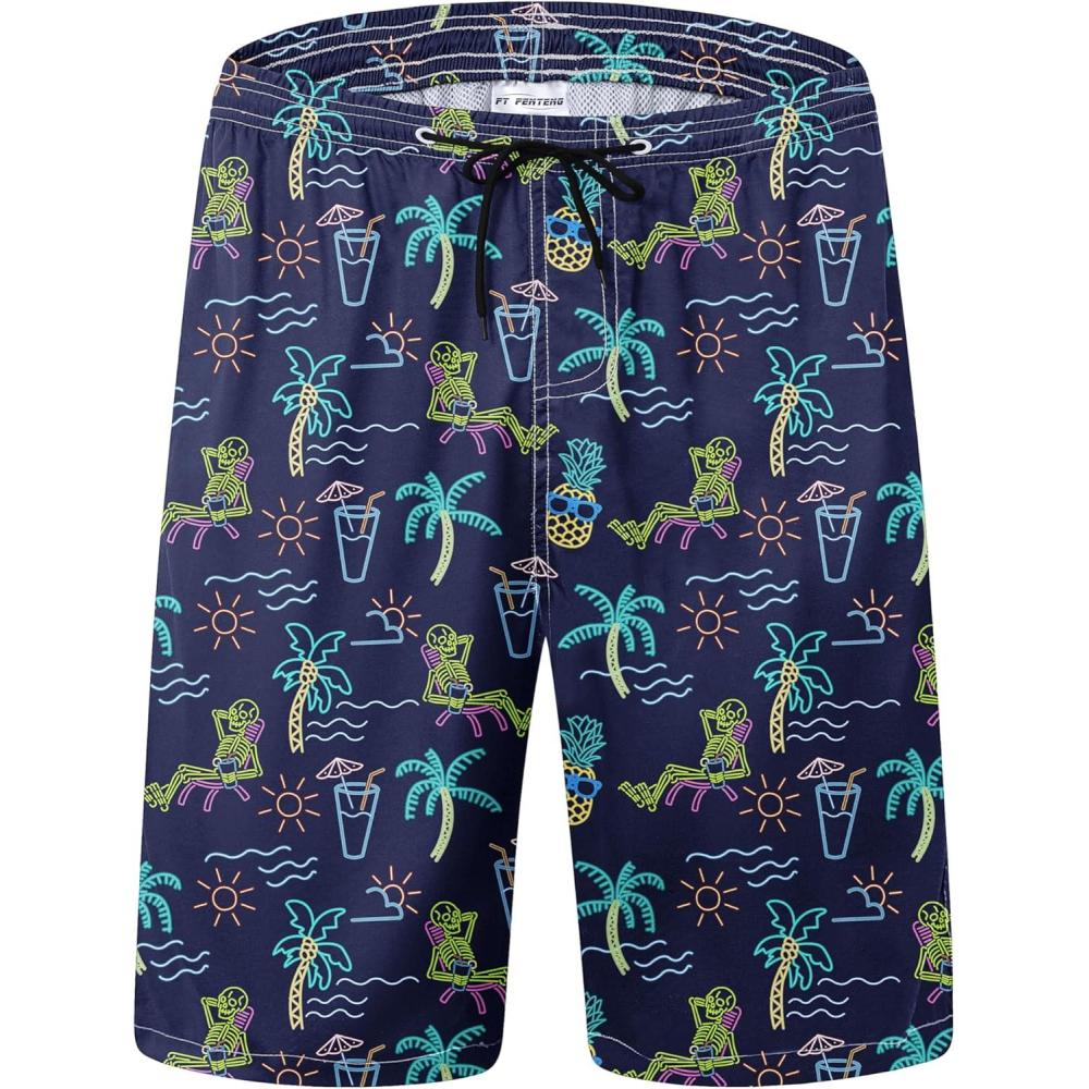imageFT FENTENG Mens Swim Trunks Quick Dry Board Shorts with Mesh Lining Breathable Surf Beach Shorts Swimwear Bathing SuitsNeon Skull Palm