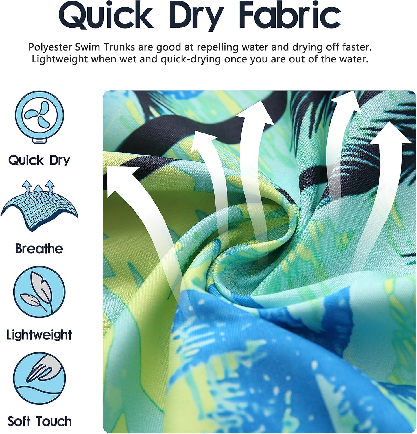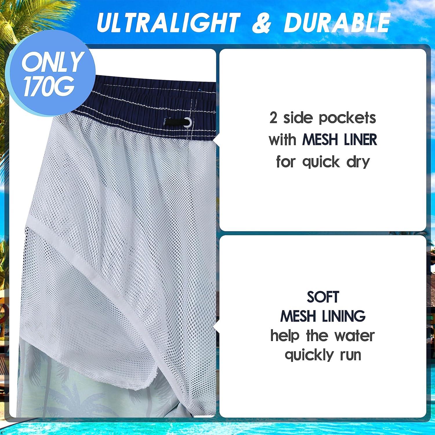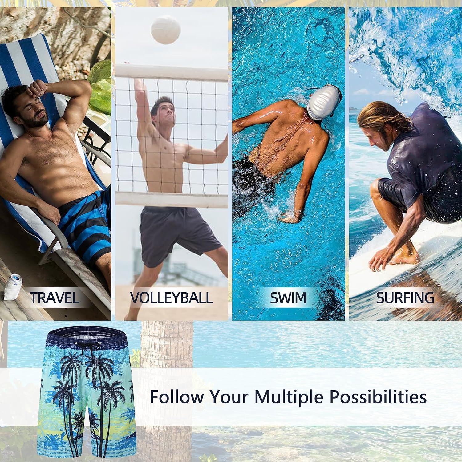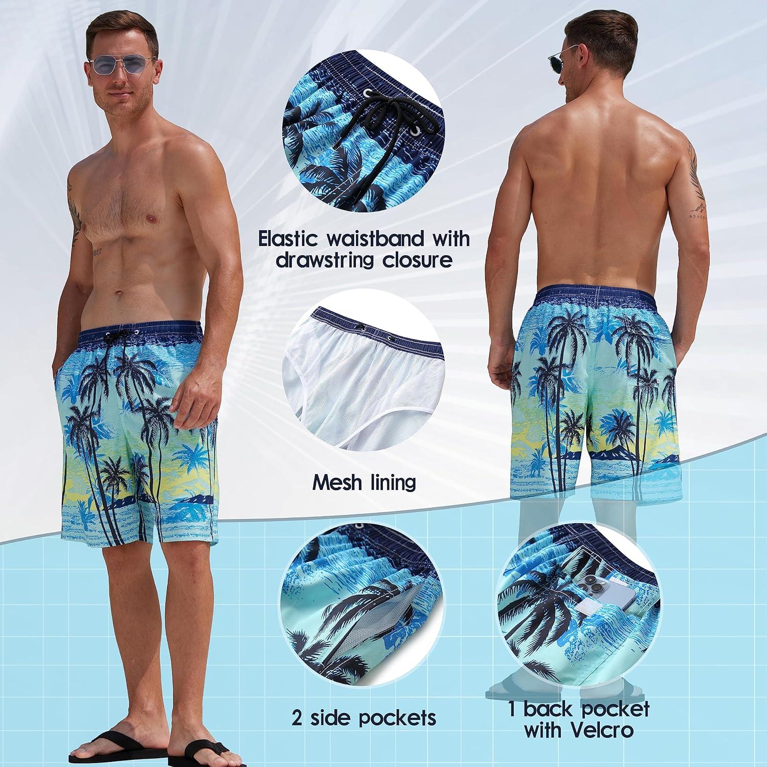 FT FENTENG Mens Swim Trunks Quick Dry Board Shorts with Mesh Lining, Breathable Surf Beach Shorts Swimwear Bathing Suits(Palm Trees-11)
