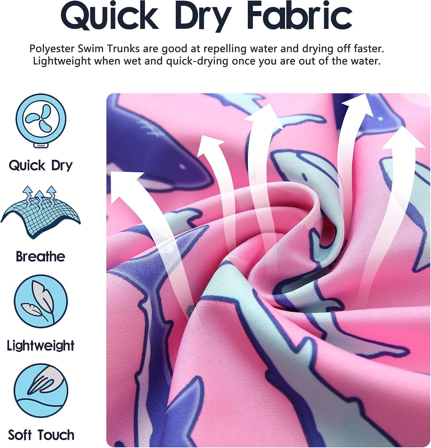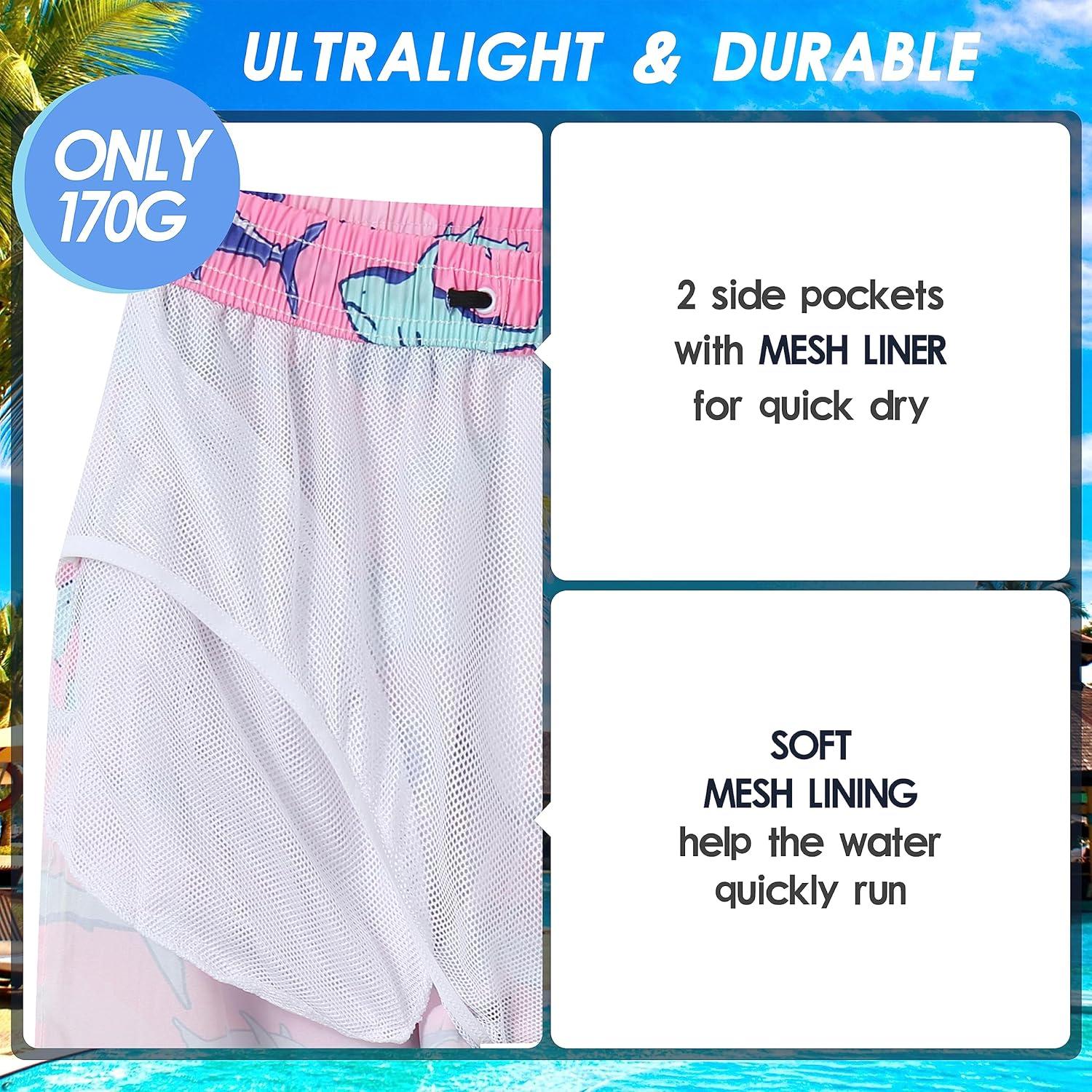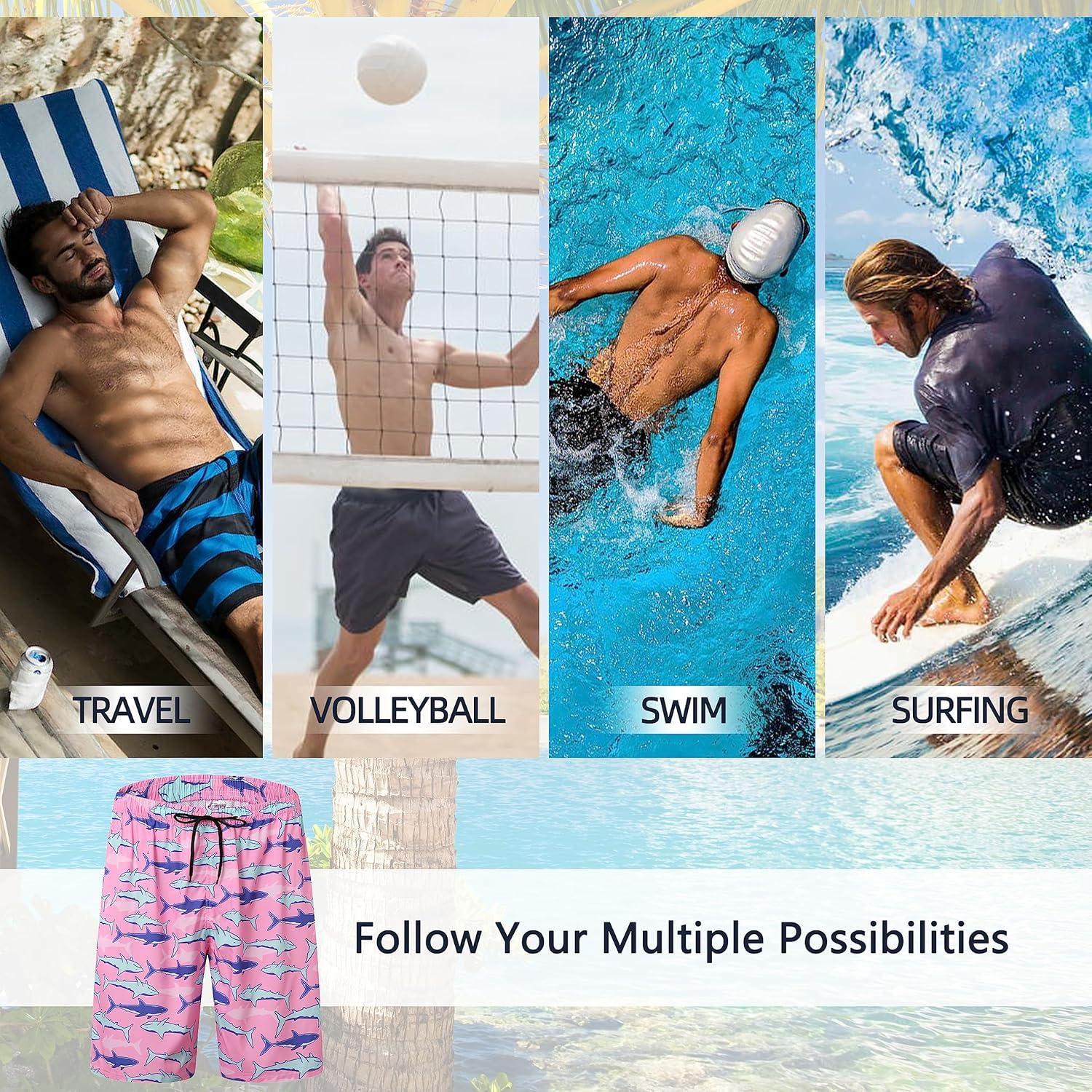 FT FENTENG Mens Swim Trunks Quick Dry Board Shorts with Mesh Lining, Breathable Surf Beach Shorts Swimwear Bathing Suits(Pink Shark-6)