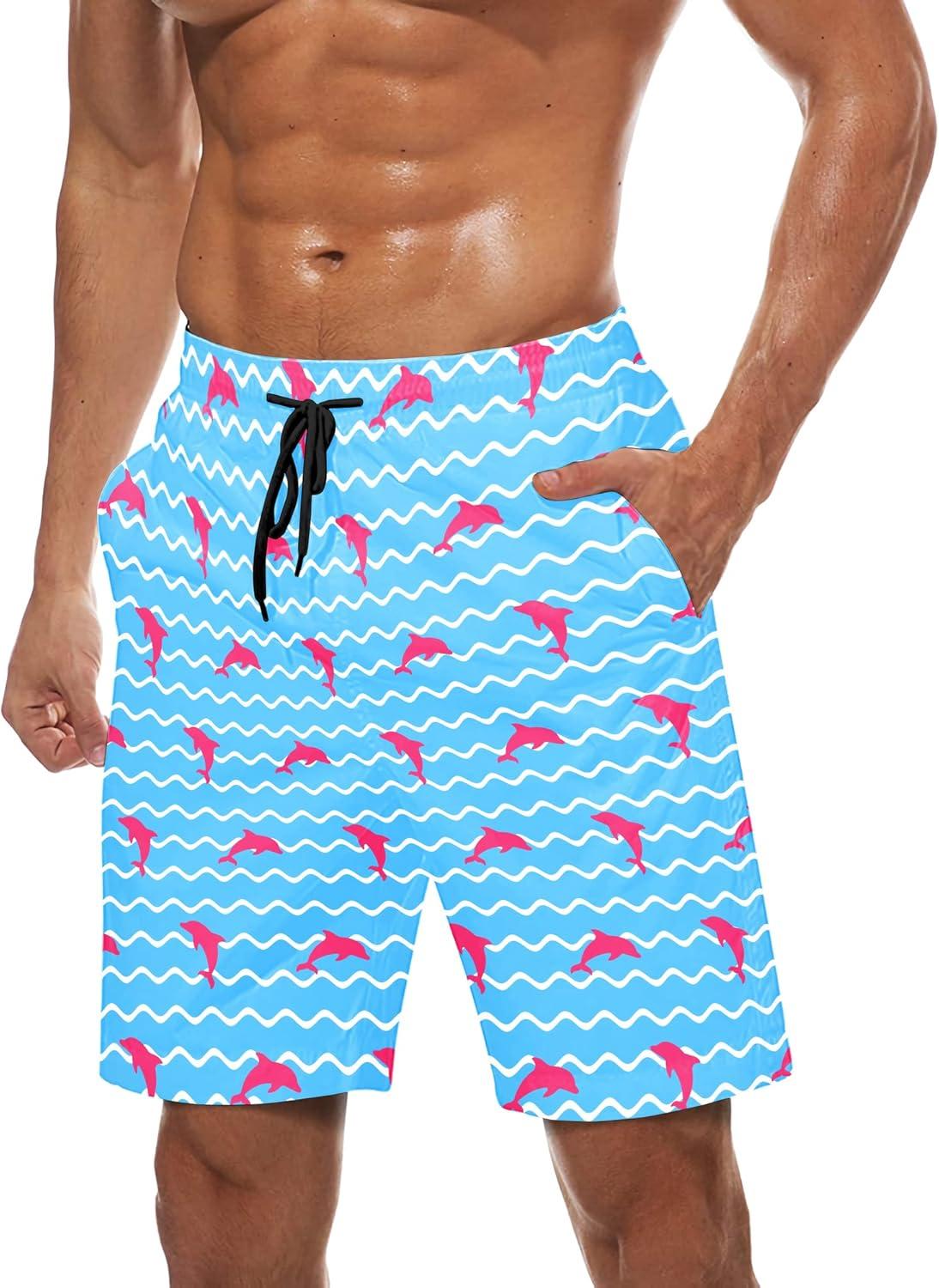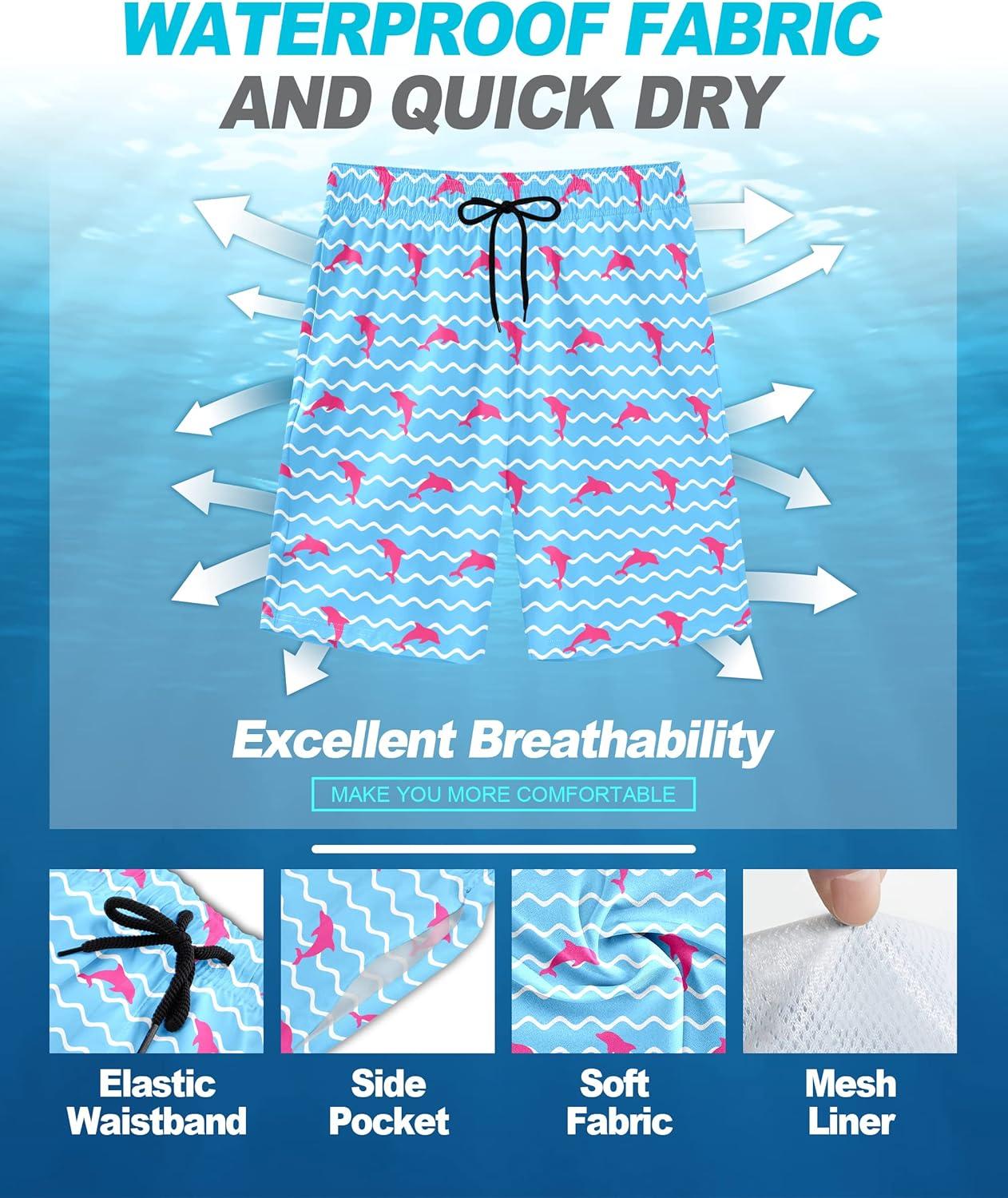 FT FENTENG Mens Swim Trunks Quick Dry Board Shorts with Mesh Lining, Breathable Surf Beach Shorts Swimwear Bathing Suits(Ocean Style-10)