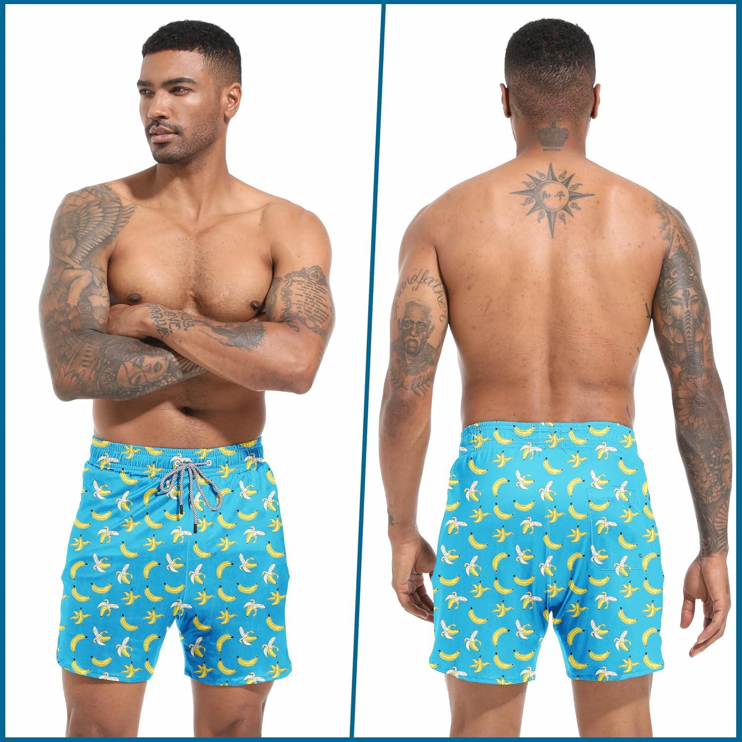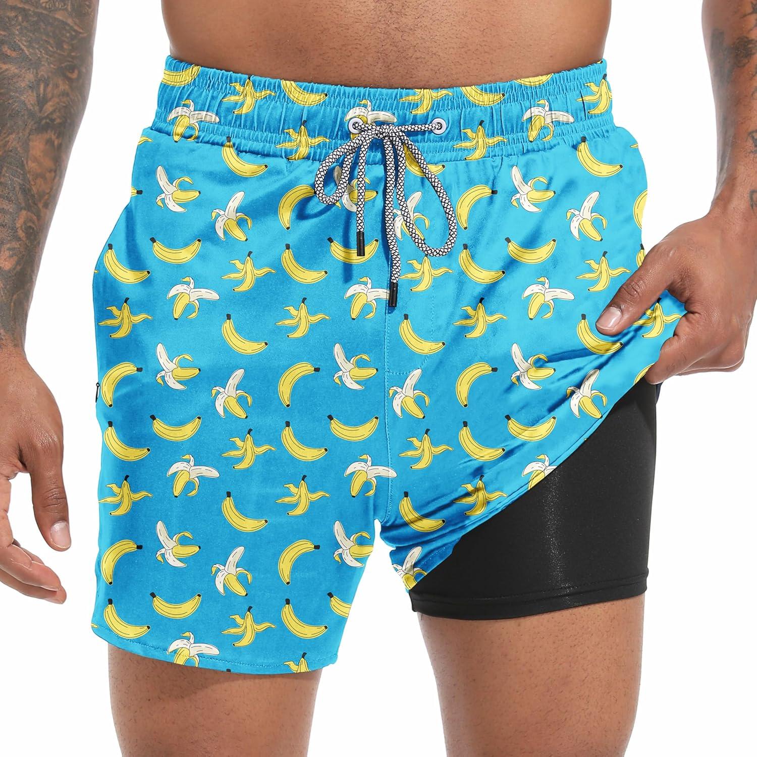 FT FENTENG Mens Swim Trunks with Compression Liner 5.5″ Board Shorts with Zipper Pockets 2 in 1 Quick Dry Bathing Suits(Banana)