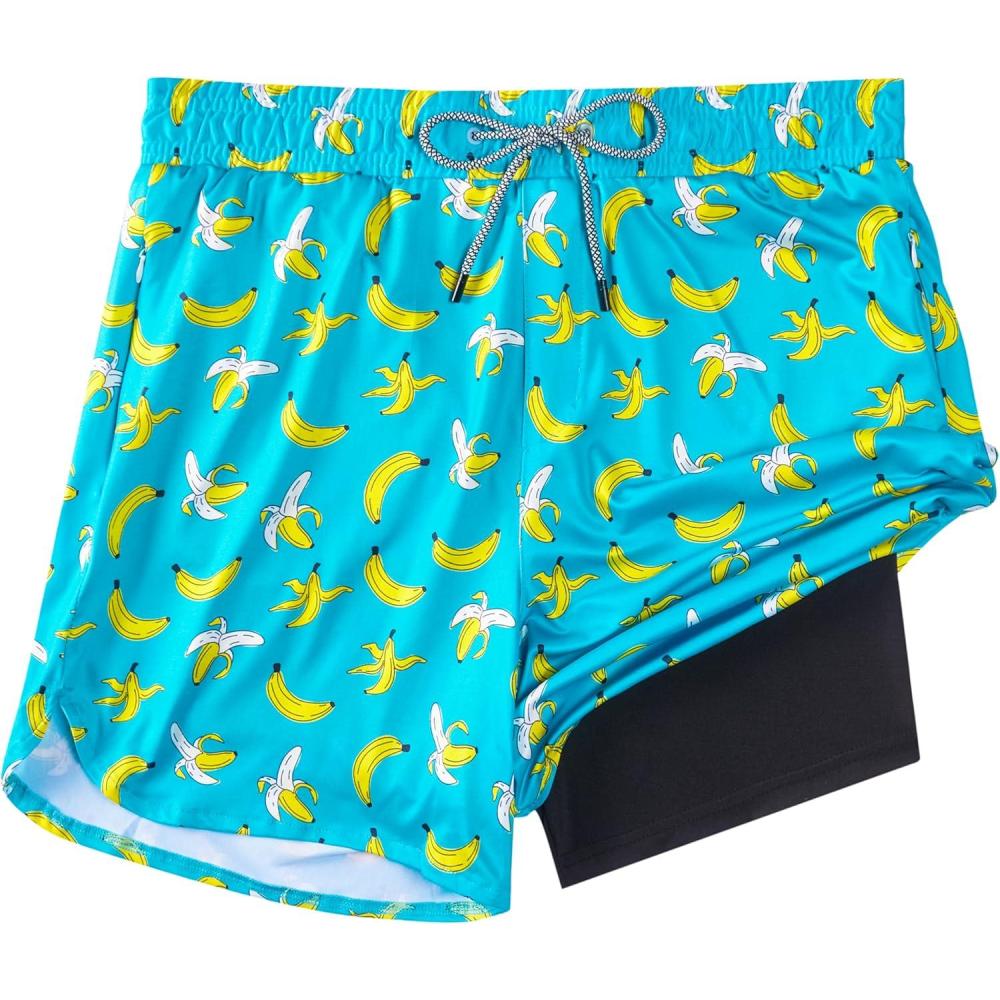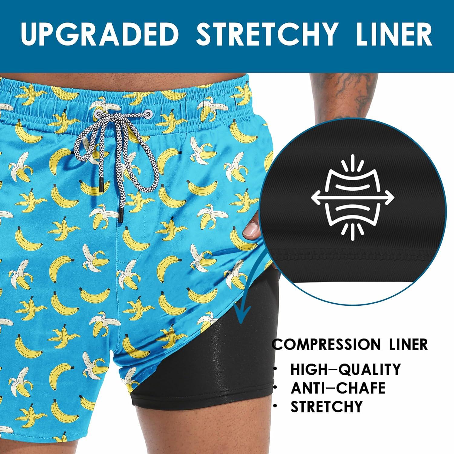 imageFT FENTENG Mens Swim Trunks with Compression Liner 55quot Board Shorts with Zipper Pockets 2 in 1 Quick Dry Bathing SuitsBanana
