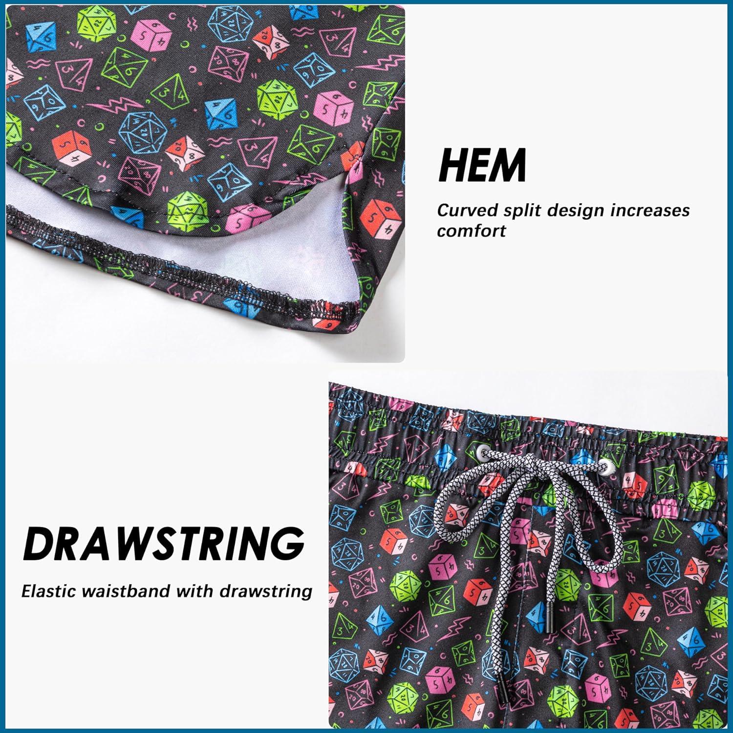 FT FENTENG Mens Swim Trunks with Compression Liner 5.5″ Board Shorts with Zipper Pockets 2 in 1 Quick Dry Bathing Suits(Bordeaux Game Dice-c)