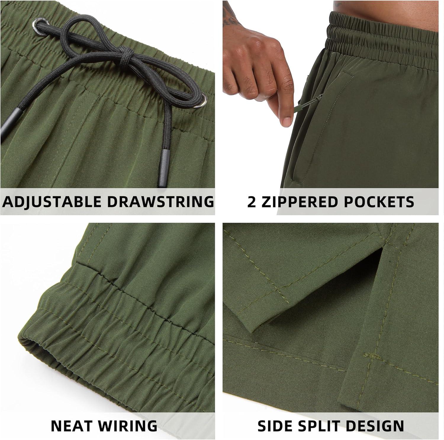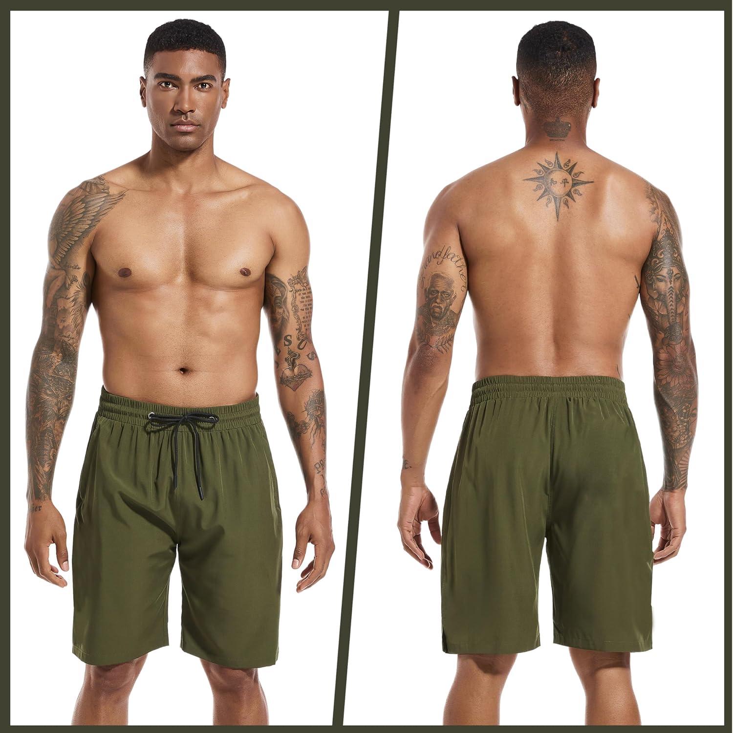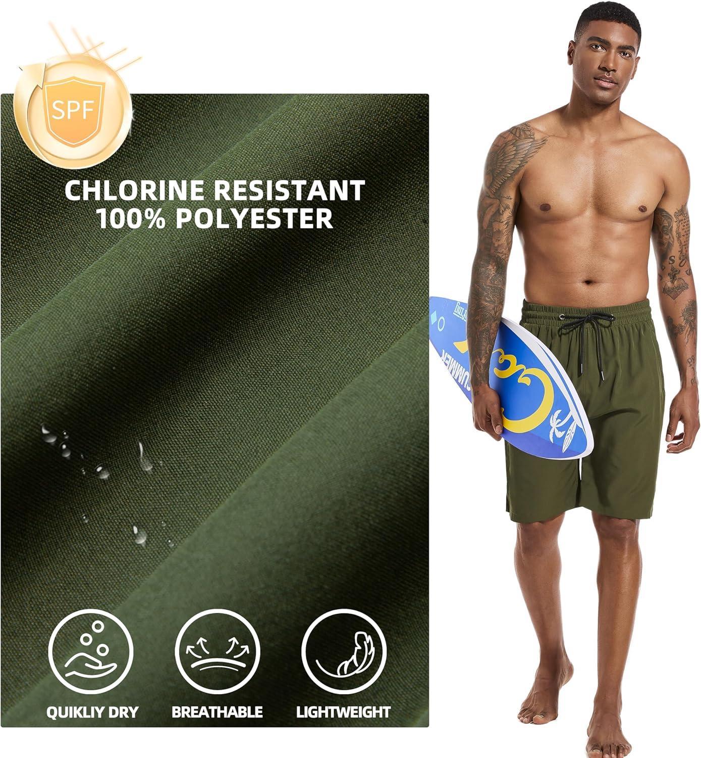 FT FENTENG Mens Swim Trunks with Compression Liner 9″ Board Shorts 2 in 1 Quick Dry Bathing Suits with Zipper Pockets(Olive-c)