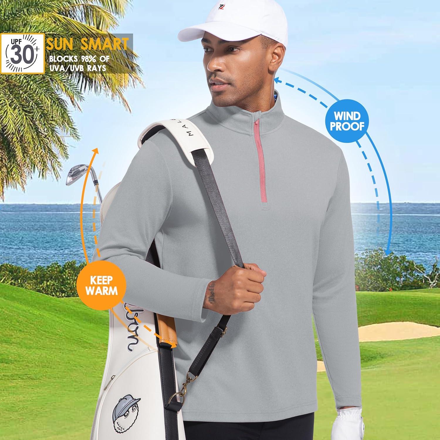 FT FENTENG Quarter Zip Golf Pullover Men Dry Fit Long Sleeve Moisture Wicking Mock Neck 1/4 Zip Pullover Mens Sweatshirts(Grey Melange)