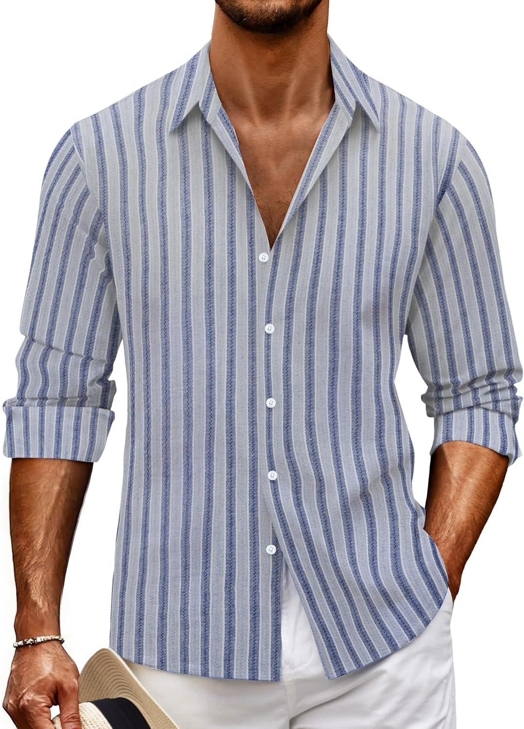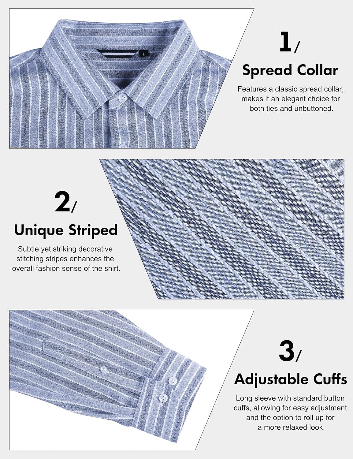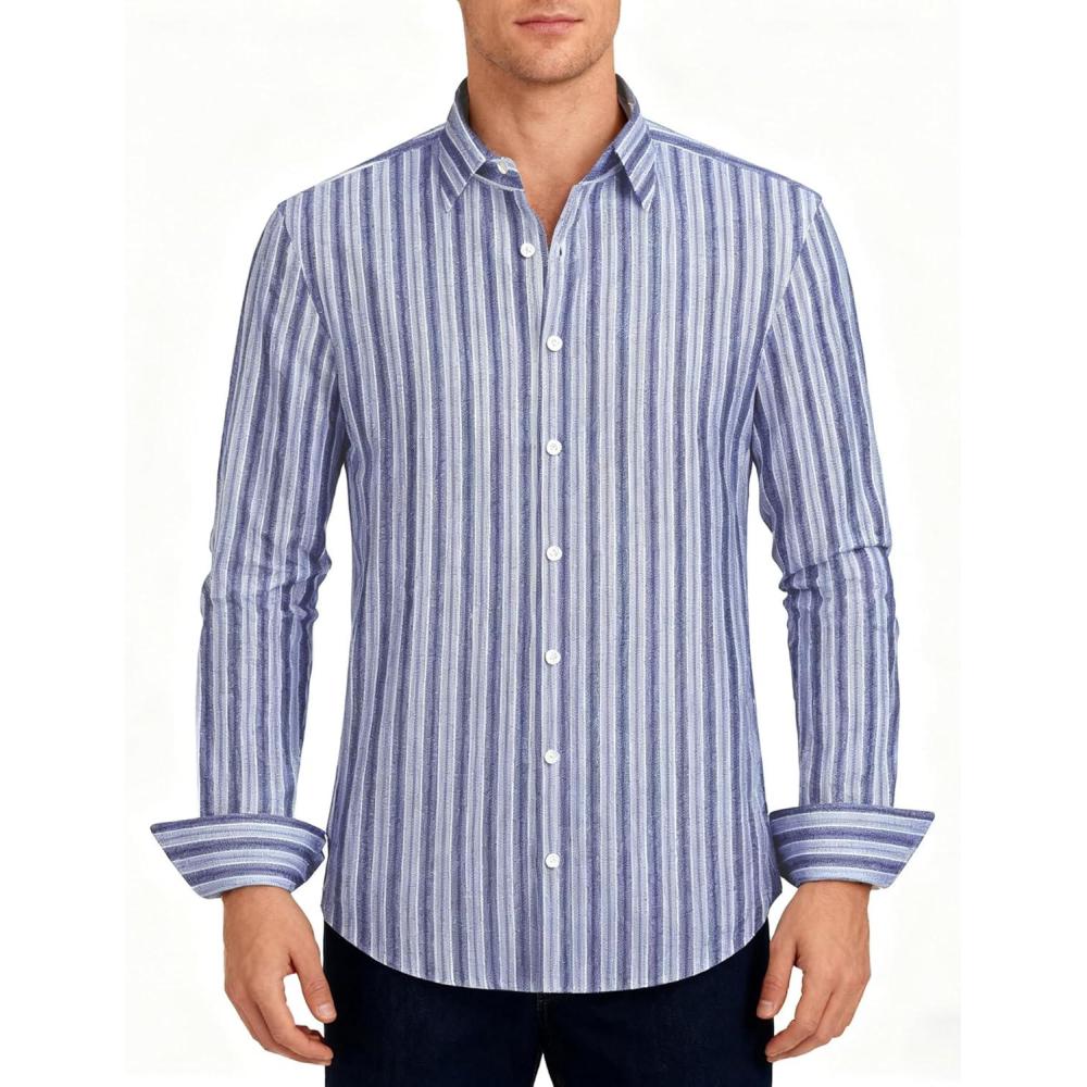 Save big on Lzzidou Men’s Striped Button Down Shirt Cotton Blend Long Sleeve Collared Dress Shirts for Business Work Office Casual Date(Blue) and accessories during our BOGO sale. Buy one, get one 50% off!