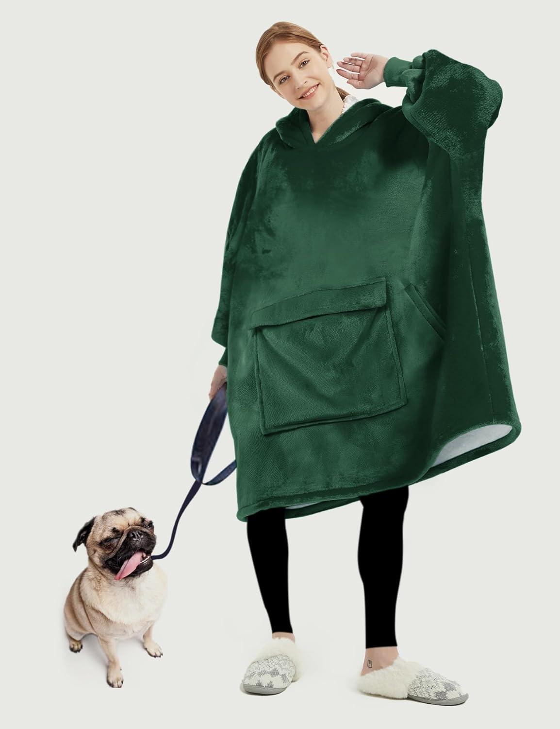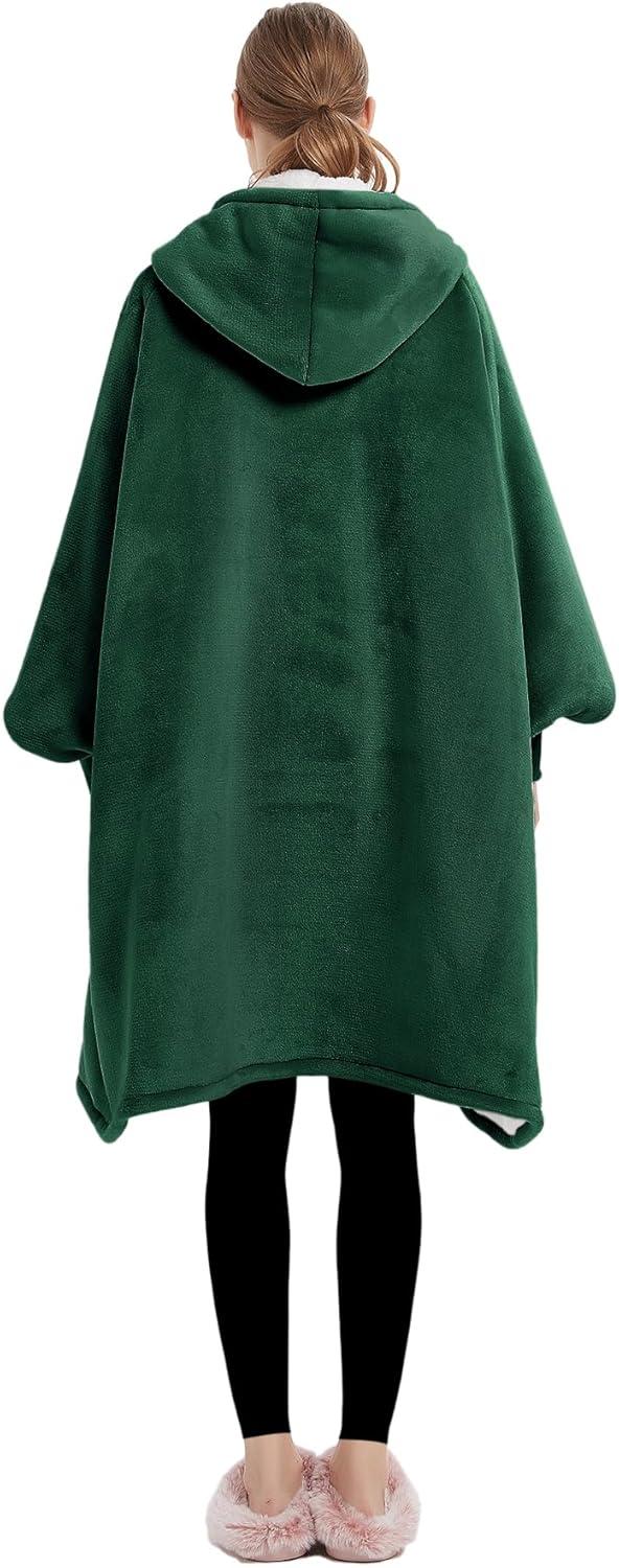 Lzzidou Oversized Blanket Hoodie for Women, Two Layers Cozy Flannel Sherpa Wearable Blanket Sweatshirt Adult(Forest Green)