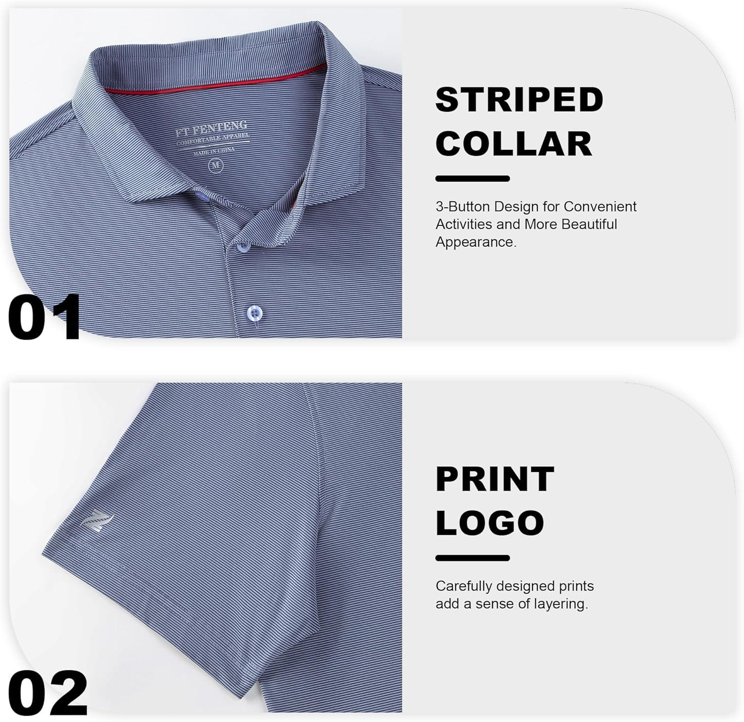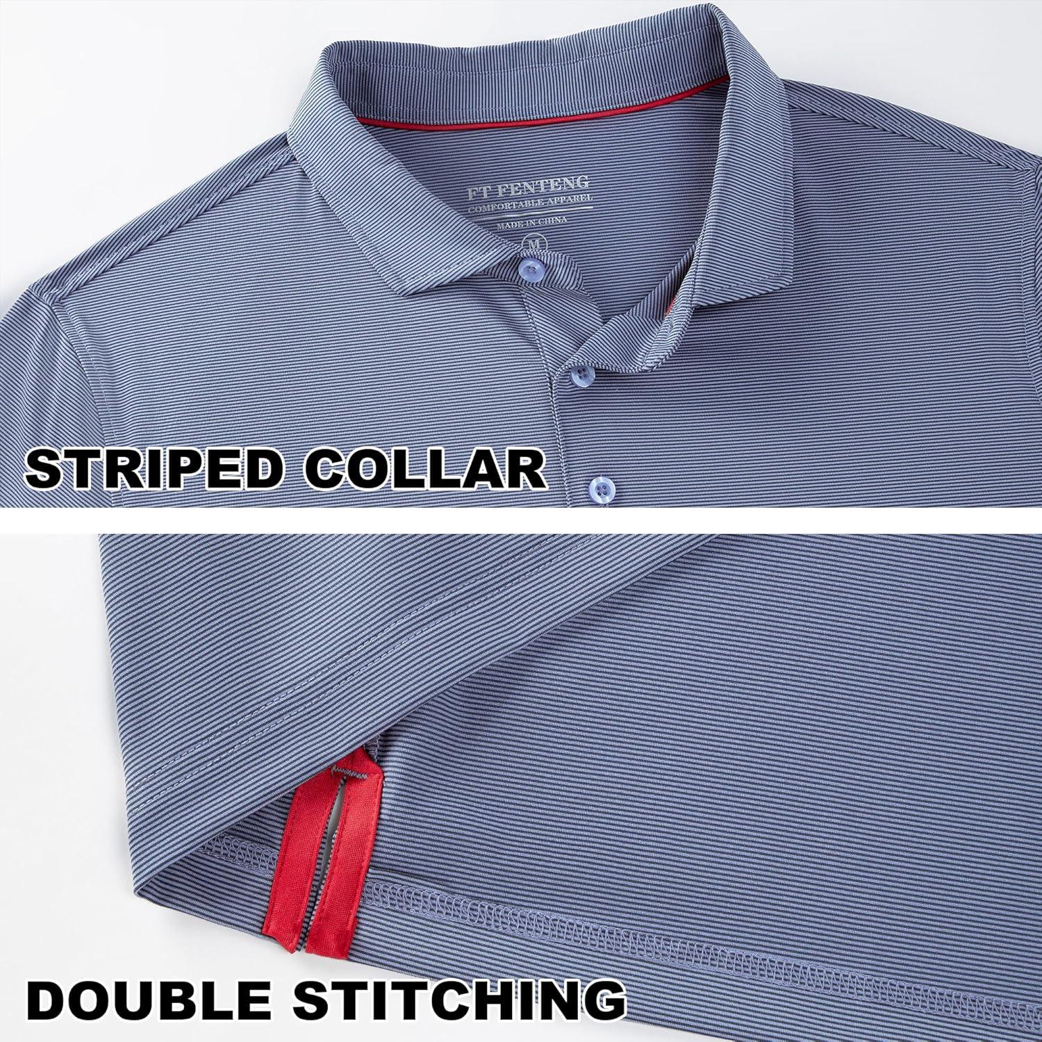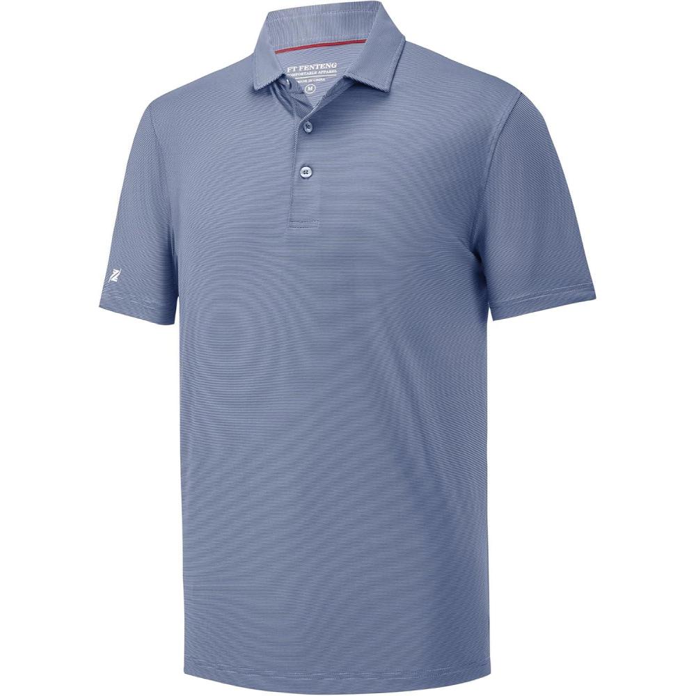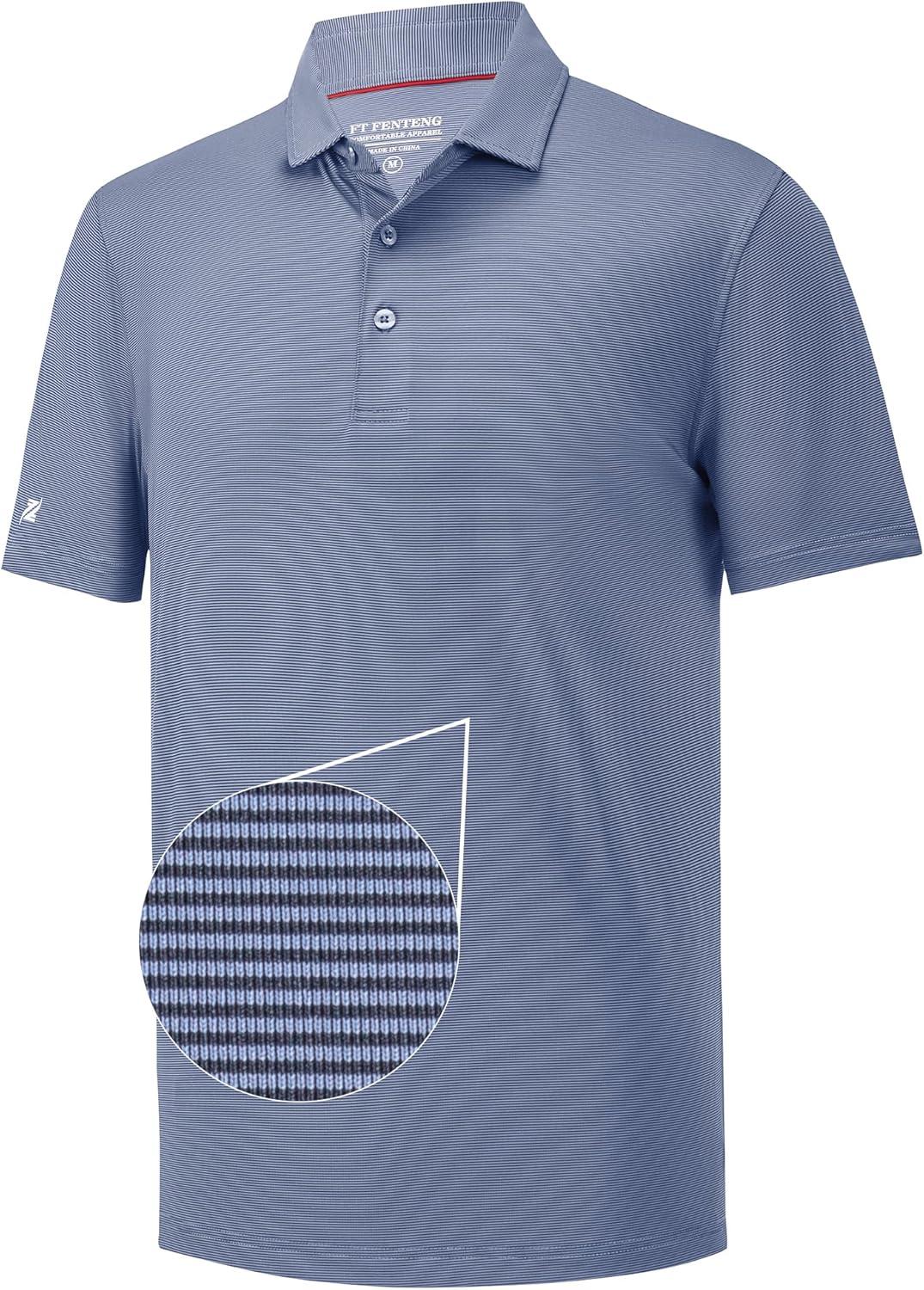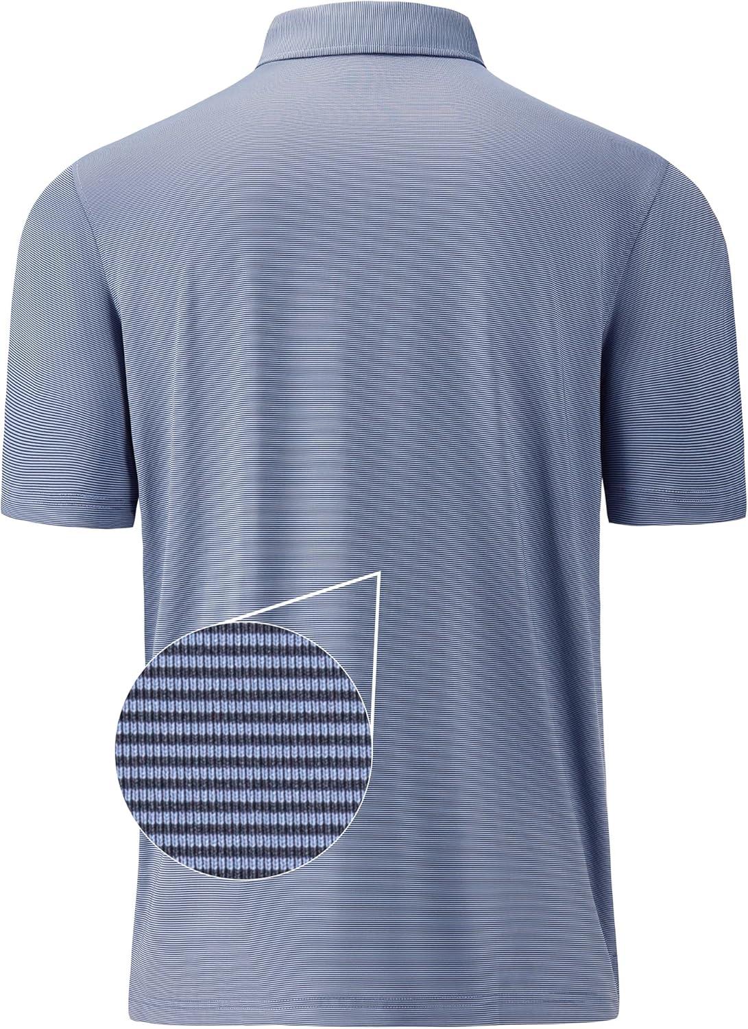 Mens Polo Shirts Short Sleeve Casual Solid Stylish Dry Fit Performance Designed Collared Golf Polo Shirts for Men(Blue Denim Stripe)