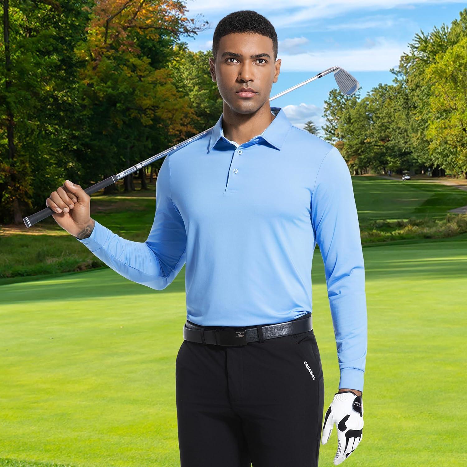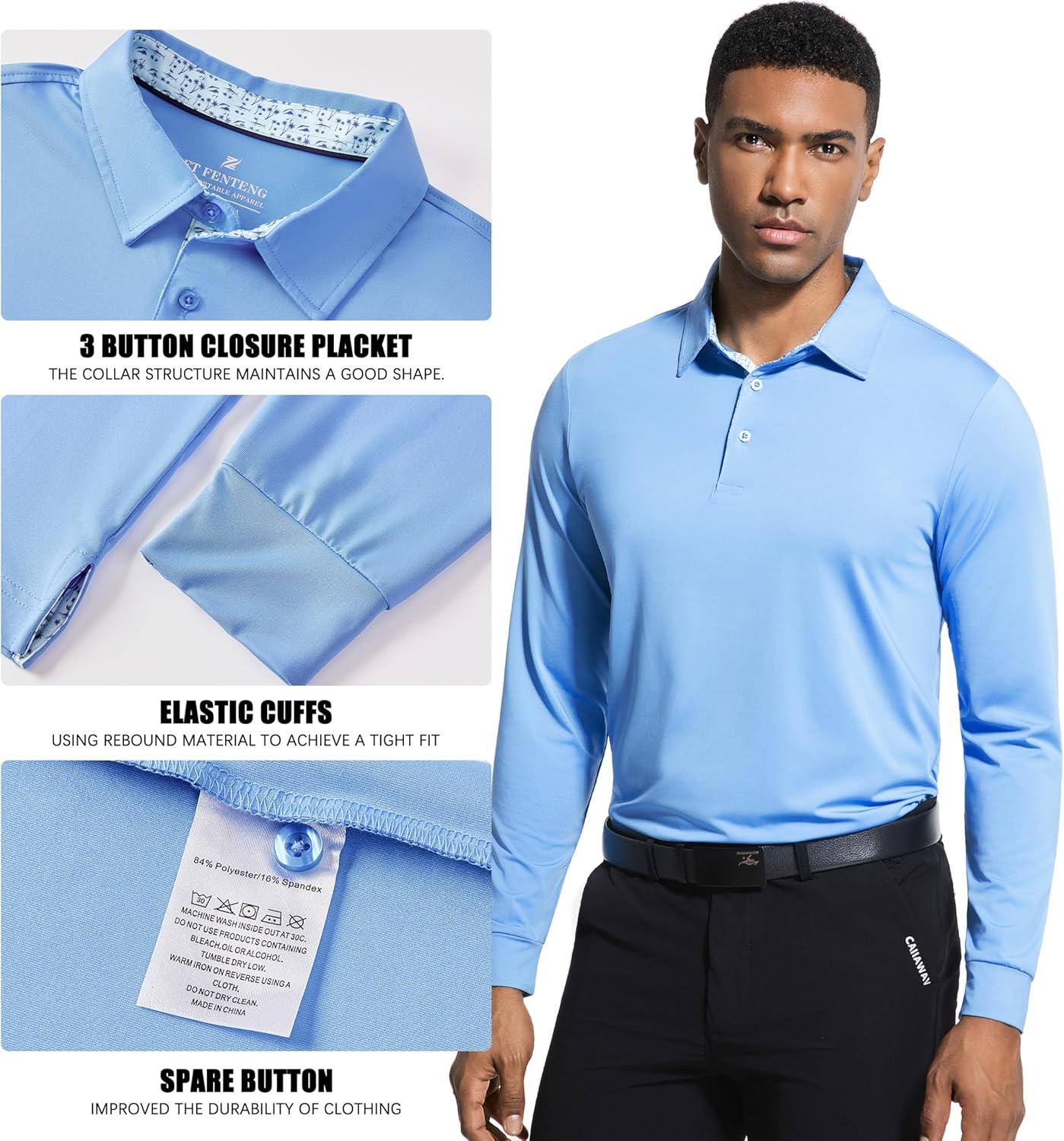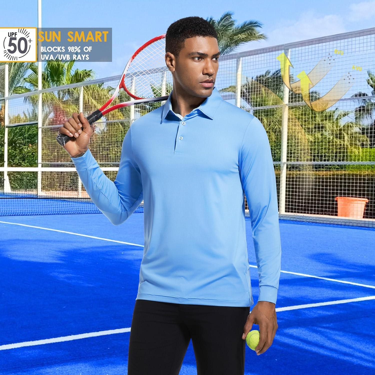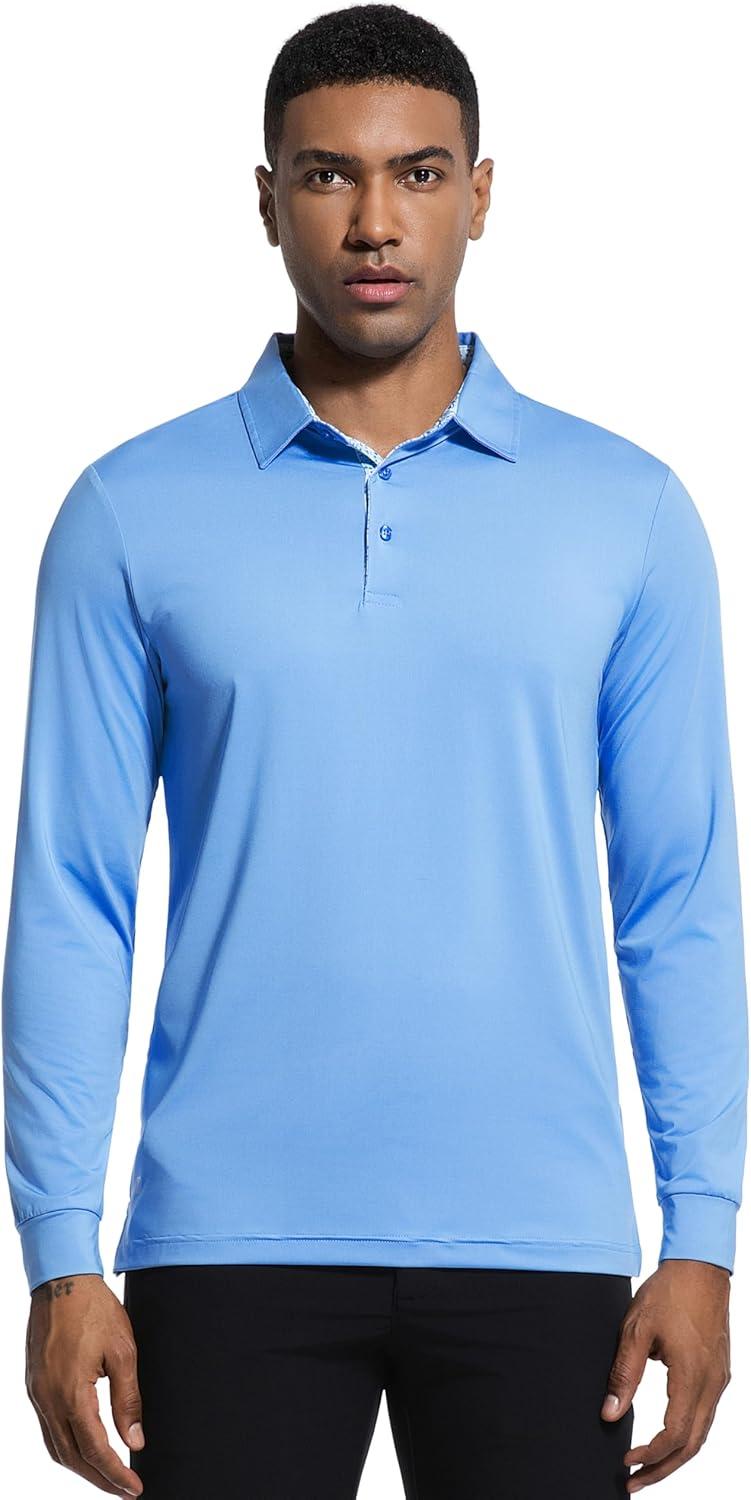 Mens Polo Shirts Short Sleeve Casual Solid Stylish Dry Fit Performance Designed Collared Golf Polo Shirts for Men(Light Blue-long)