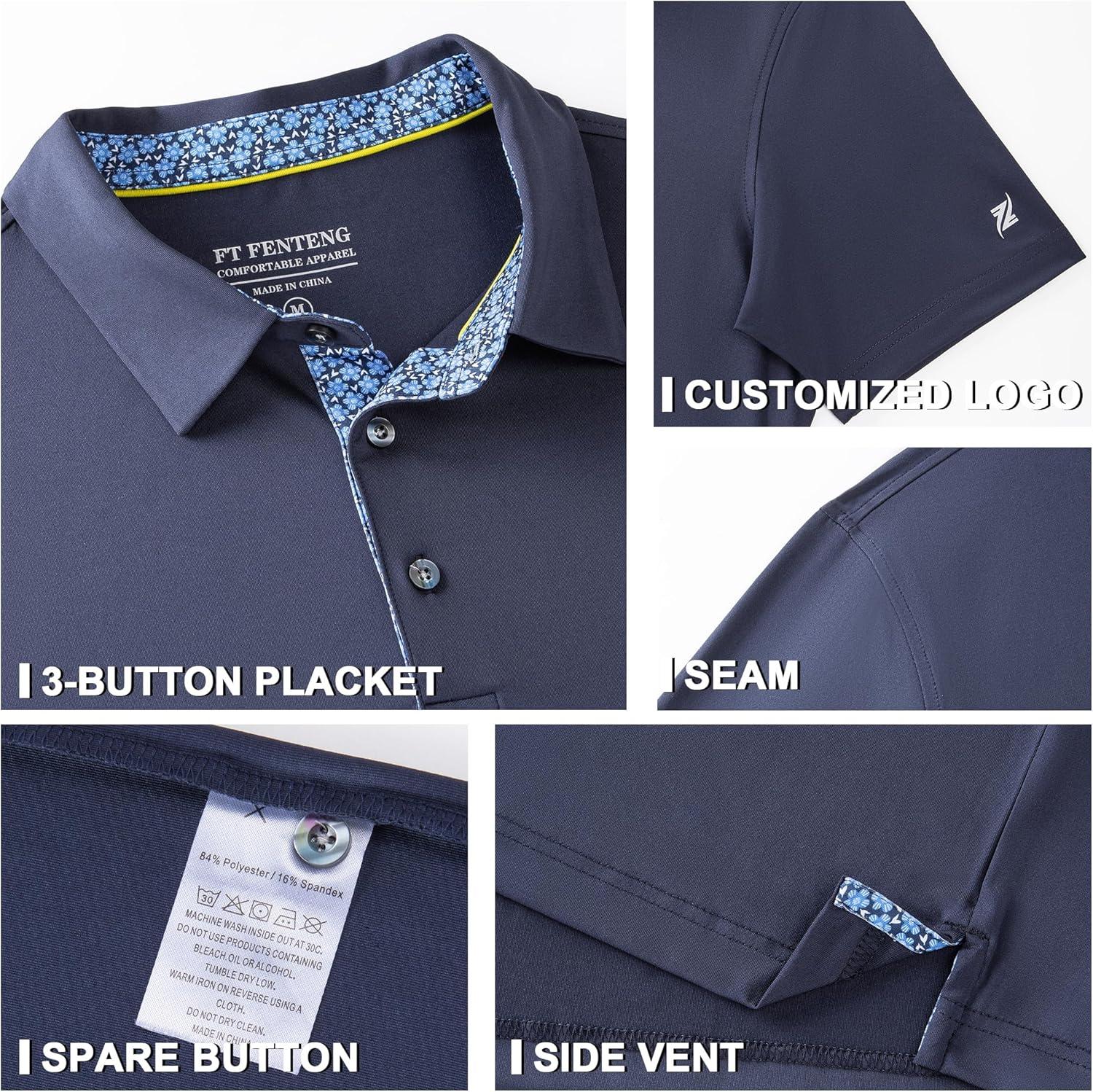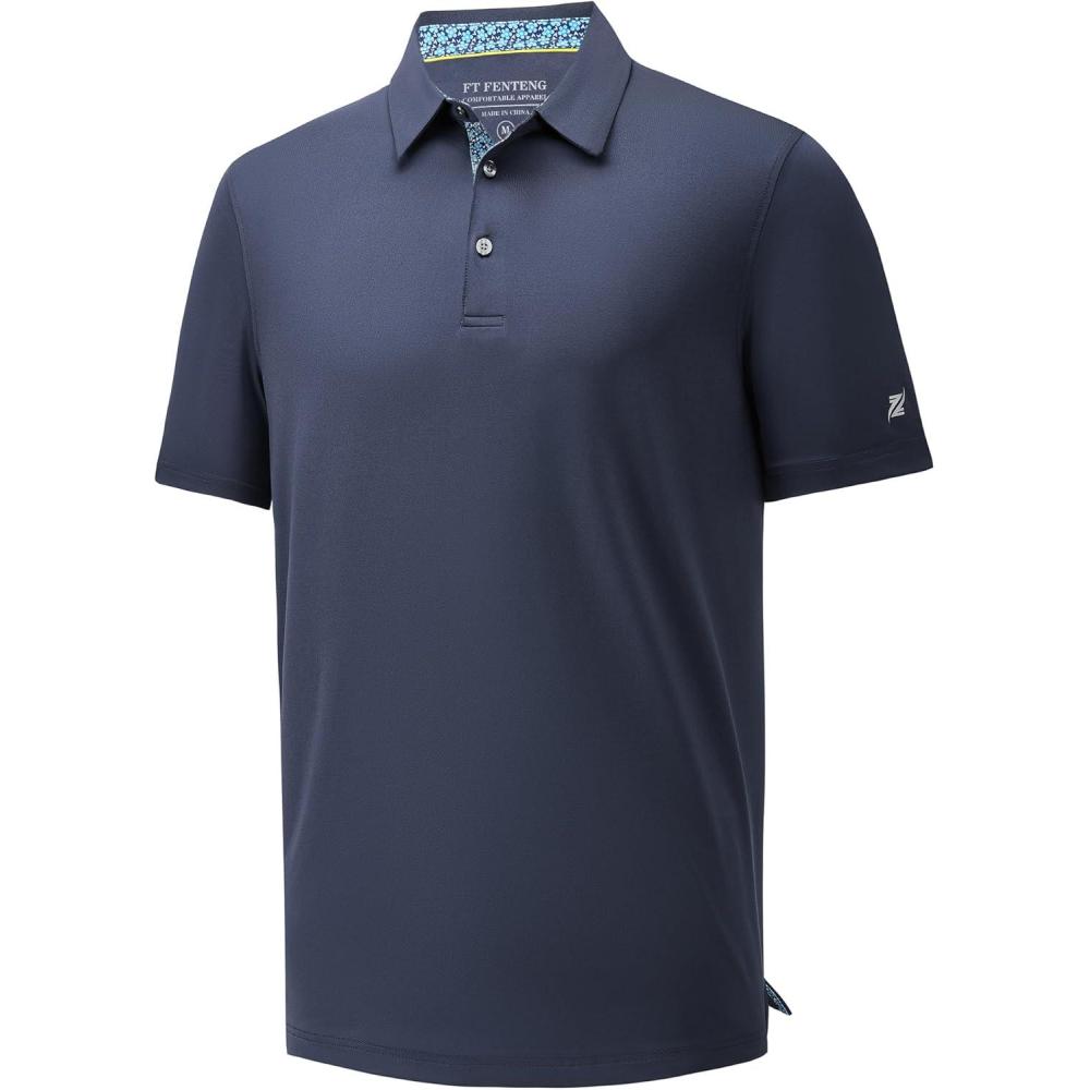 Mens Polo Shirts Short Sleeve Casual Solid Stylish Dry Fit Performance Designed Collared Golf Polo Shirts for Men(Navy)